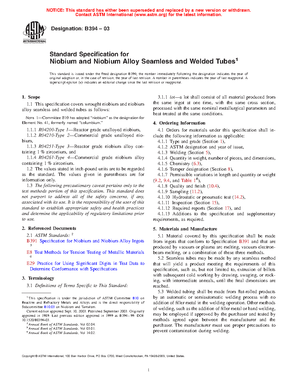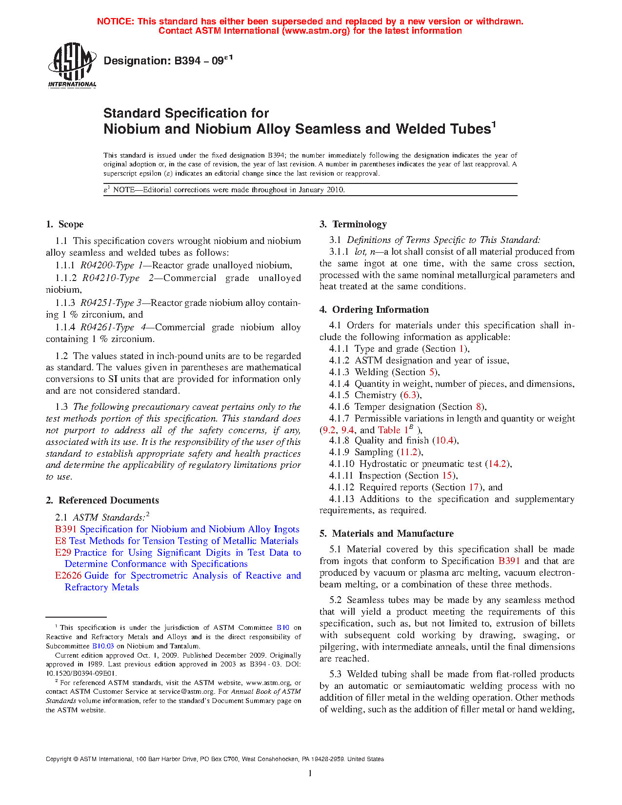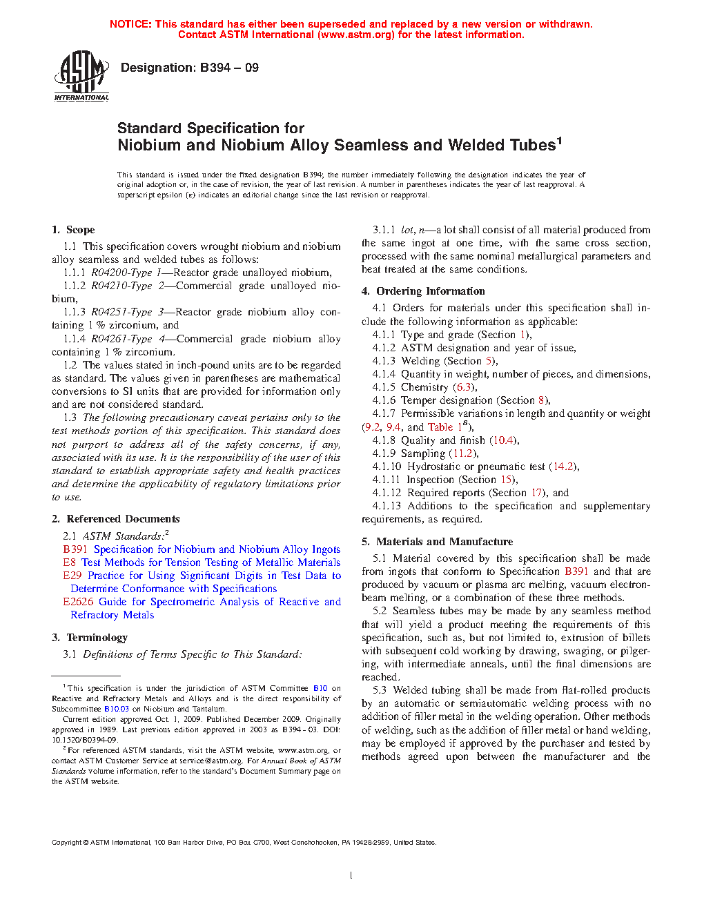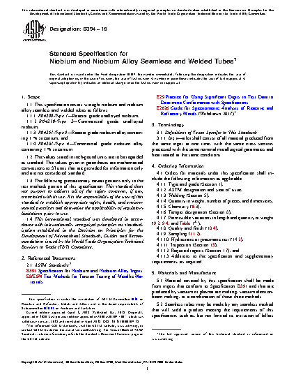 1.1 This specification covers wrought niobium and niobium alloy seamless and welded tubes as follows: