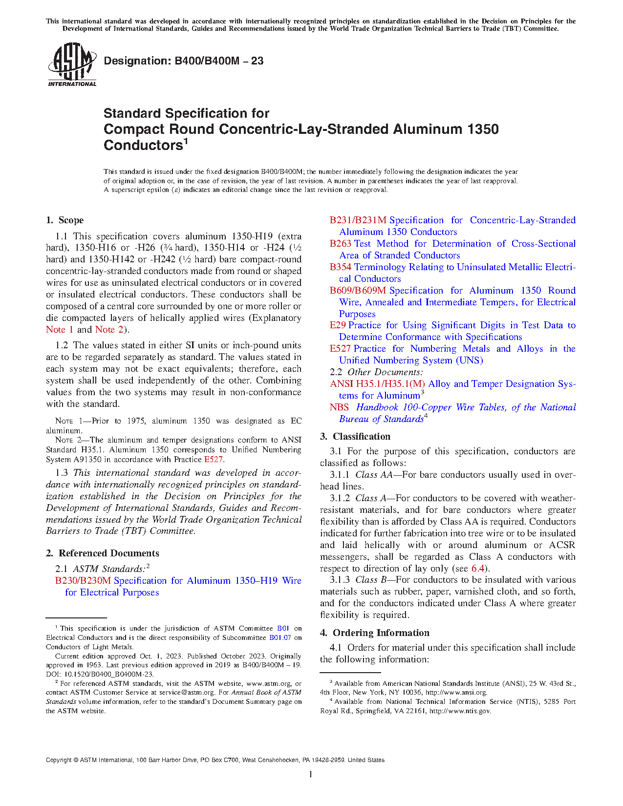 Note 2: The aluminum and temper designations conform to ANSI Standard H35.1. Aluminum 1350 corresponds to Unified Numbering System A91350 in accordance with Practice E527.