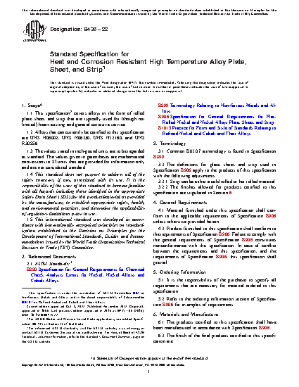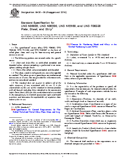 1.1 This specification covers alloys UNS N06002, UNS N06230, UNS N12160, and UNS R30556* in the form of rolled plate, sheet, and strip for heat-resisting and general corrosive service.