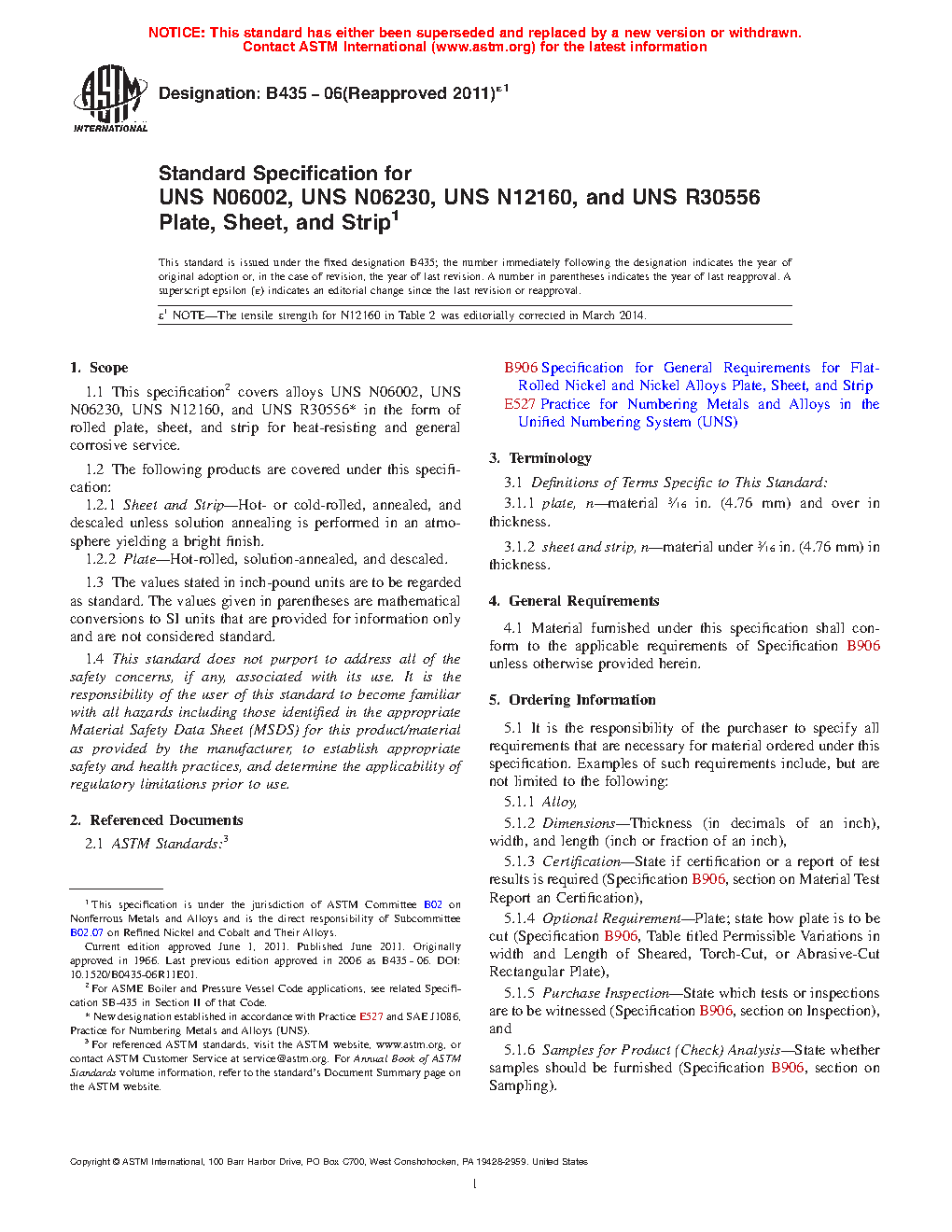 Standard Specification for UNS N06002, UNS N06230, UNS N12160, and UNS R30556 Plate, Sheet, and Strip