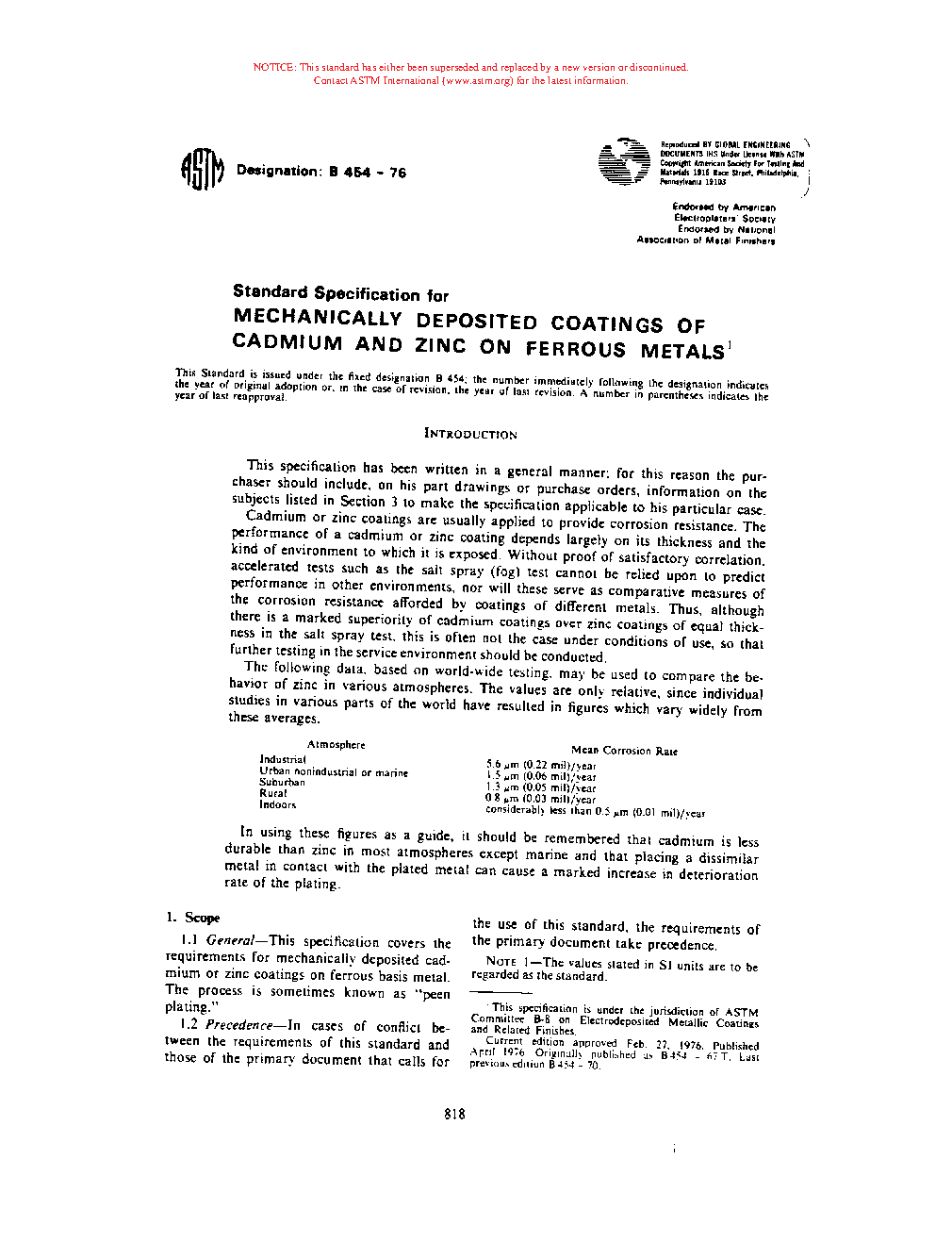 Specification for Mechanically Deposited Coatings of Cadmium and Zinc on Ferrous Metals (Withdrawn 1981)