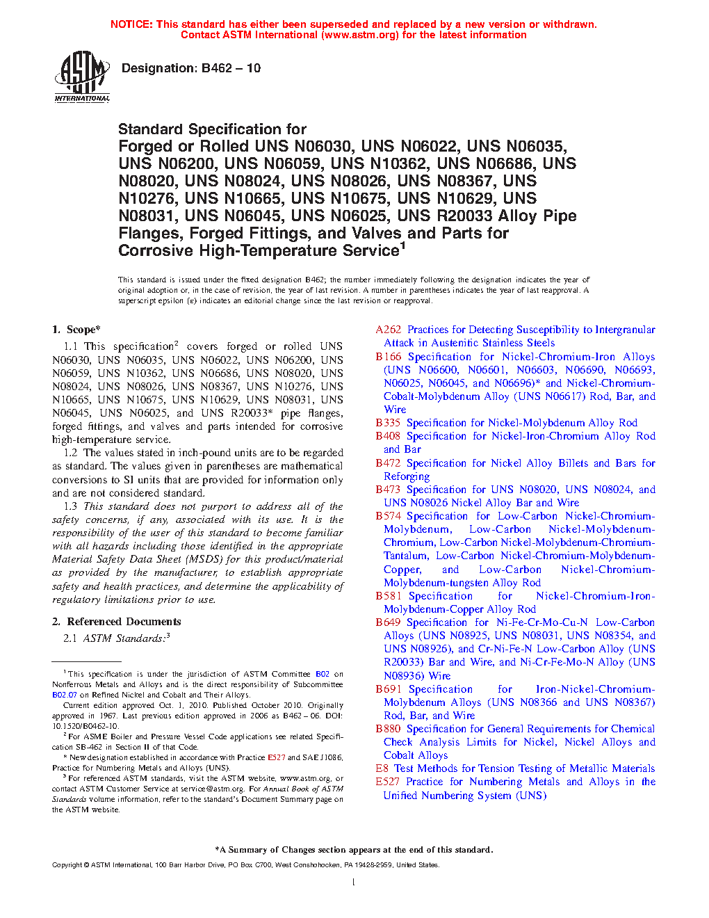 1.1 This specification2 covers forged or rolled UNS N06030, UNS N06035, UNS N06022, UNS N06200, UNS N06059, UNS N10362, UNS N06686, UNS N08020, UNS N08367, UNS N10276, UNS N10665, UNS N10675, UNS N10629, UNS N08031, UNS N06045, UNS N06025, UNS N06699, and UNS R200333 pipe flanges, forged fittings, and valves and parts intended for corrosive high-temperature service.