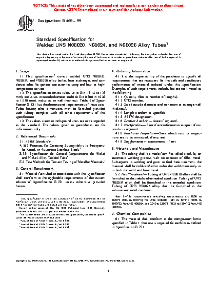 1.1 This specification2 covers welded UNS N08020 alloy boiler, heat exchanger, and condenser tubes for general corrosion-resisting and low- or high-temperature service.