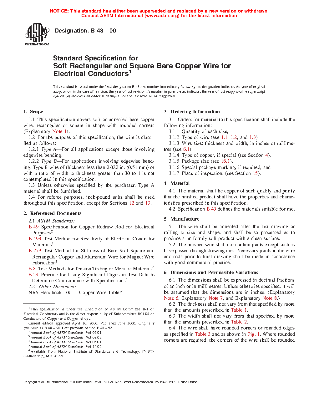 1.1 This specification covers soft or annealed bare copper wire, rectangular or square in shape with rounded corners (Explanatory Note 1).