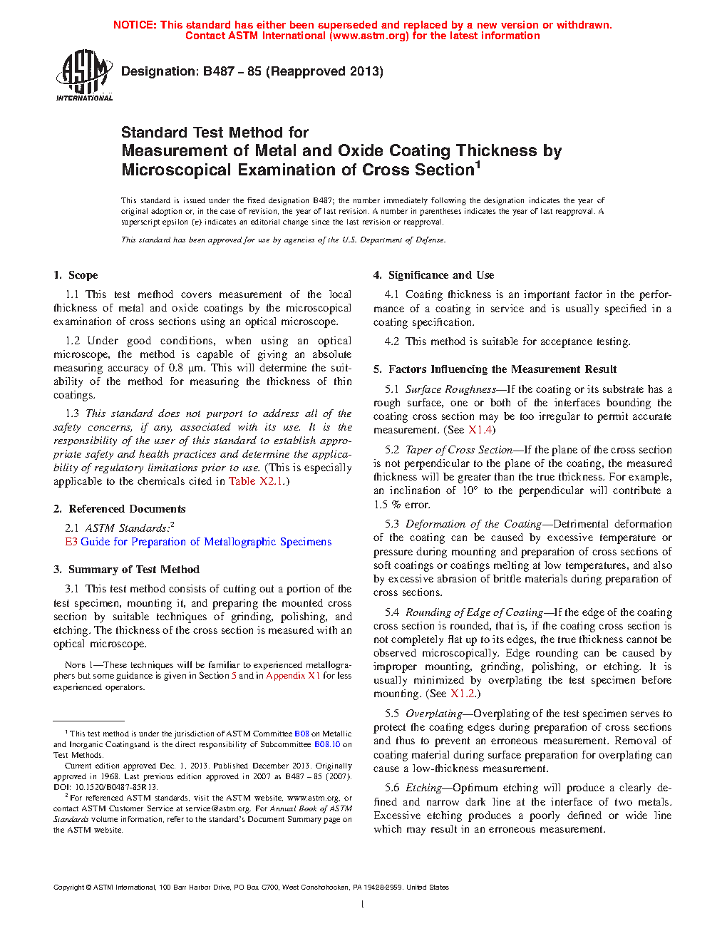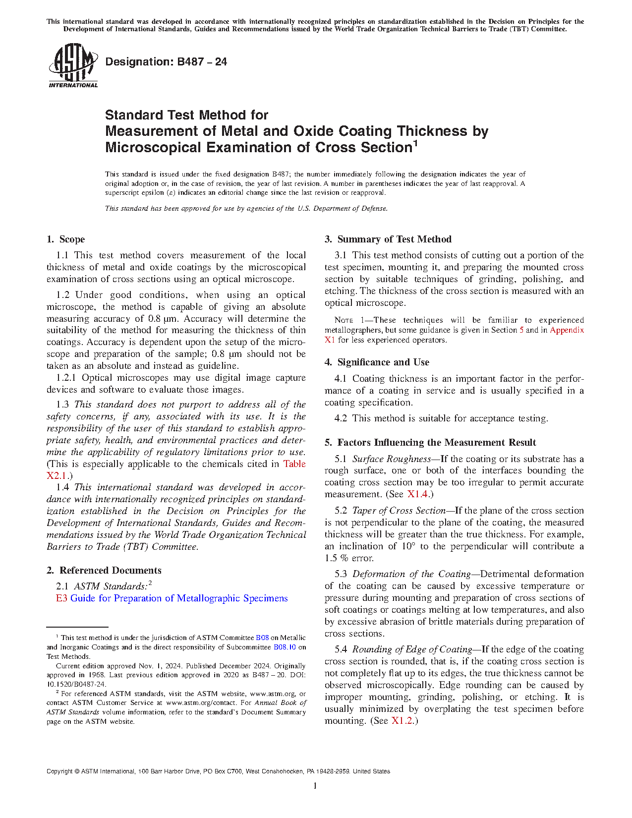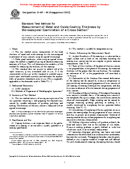 1.1 This test method covers measurement of the local thickness of metal and oxide coatings by the microscopical examination of cross sections using an optical microscope.