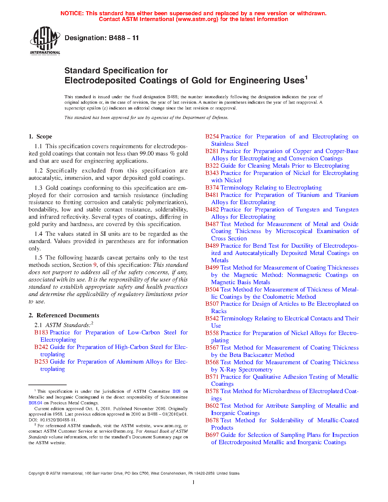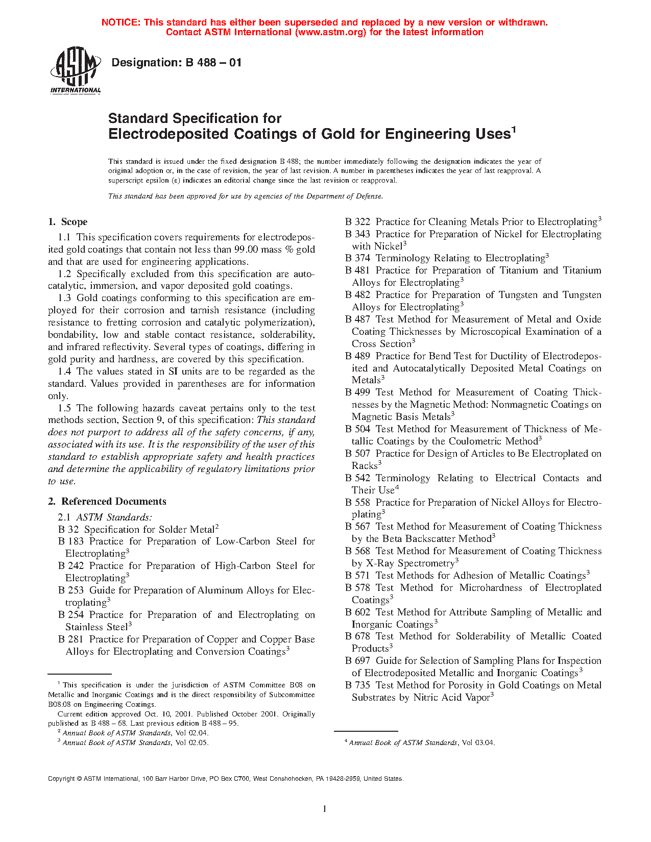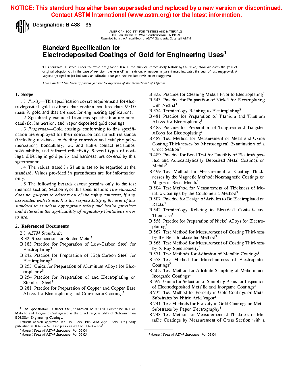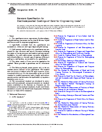 1.1 This specification covers requirements for electrodeposited gold coatings that contain not less than 99.00 mass % gold and that are used for engineering applications.