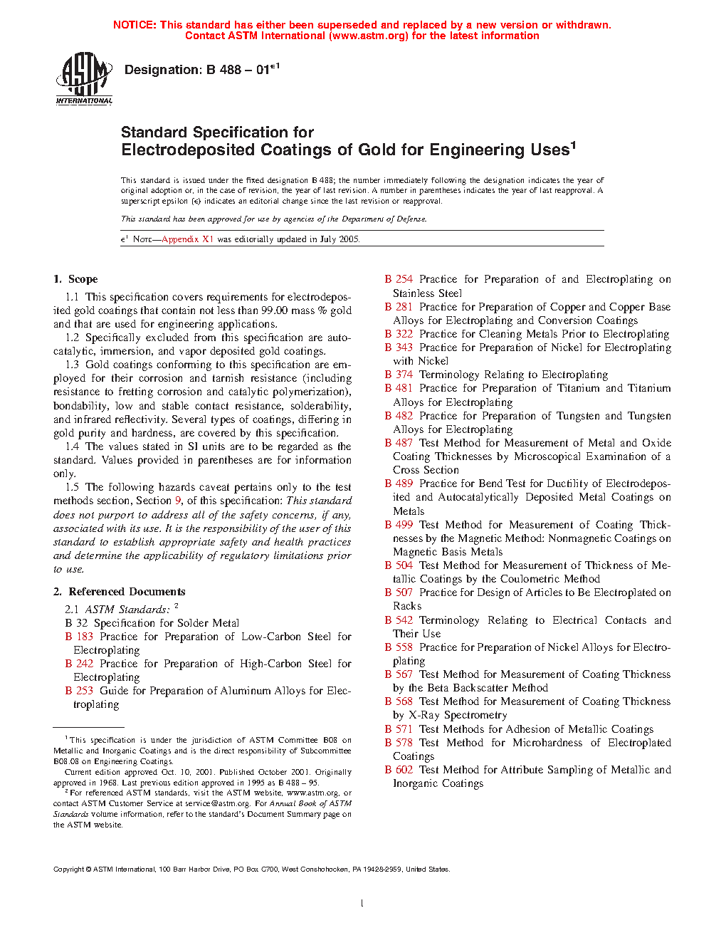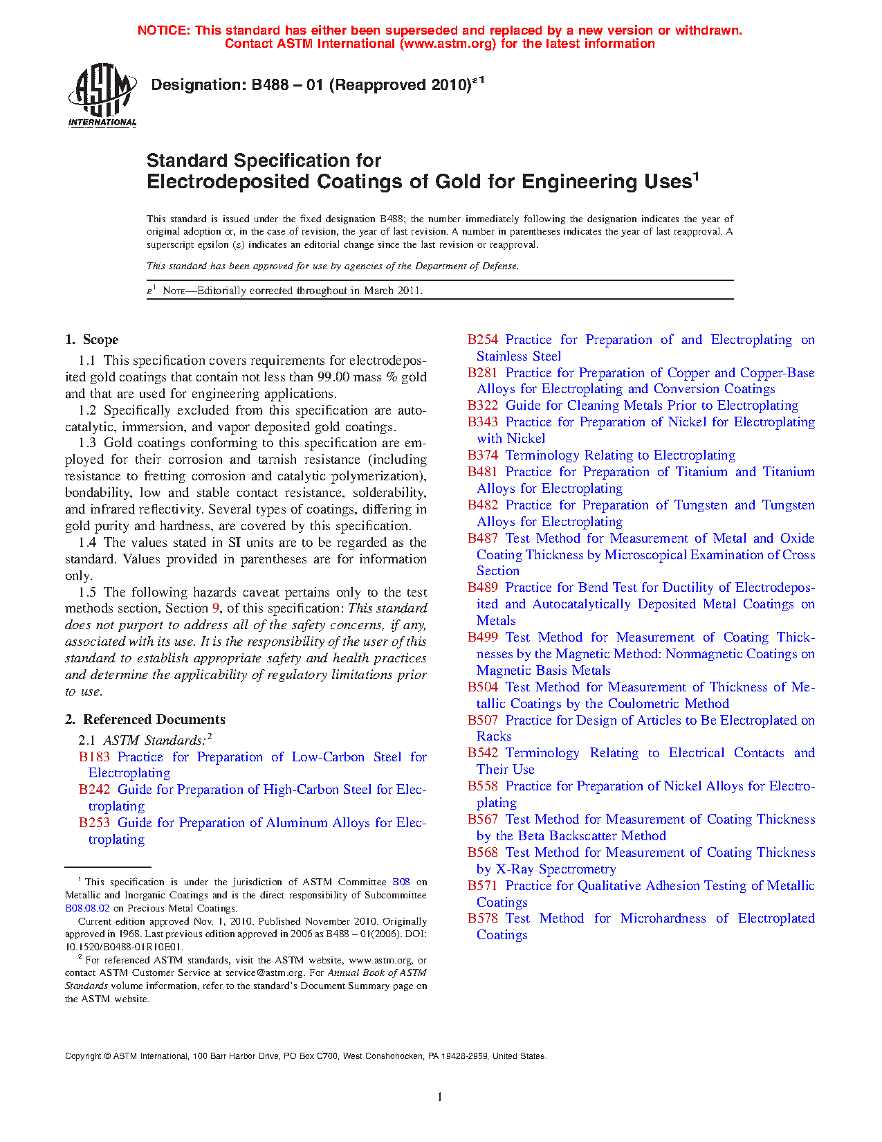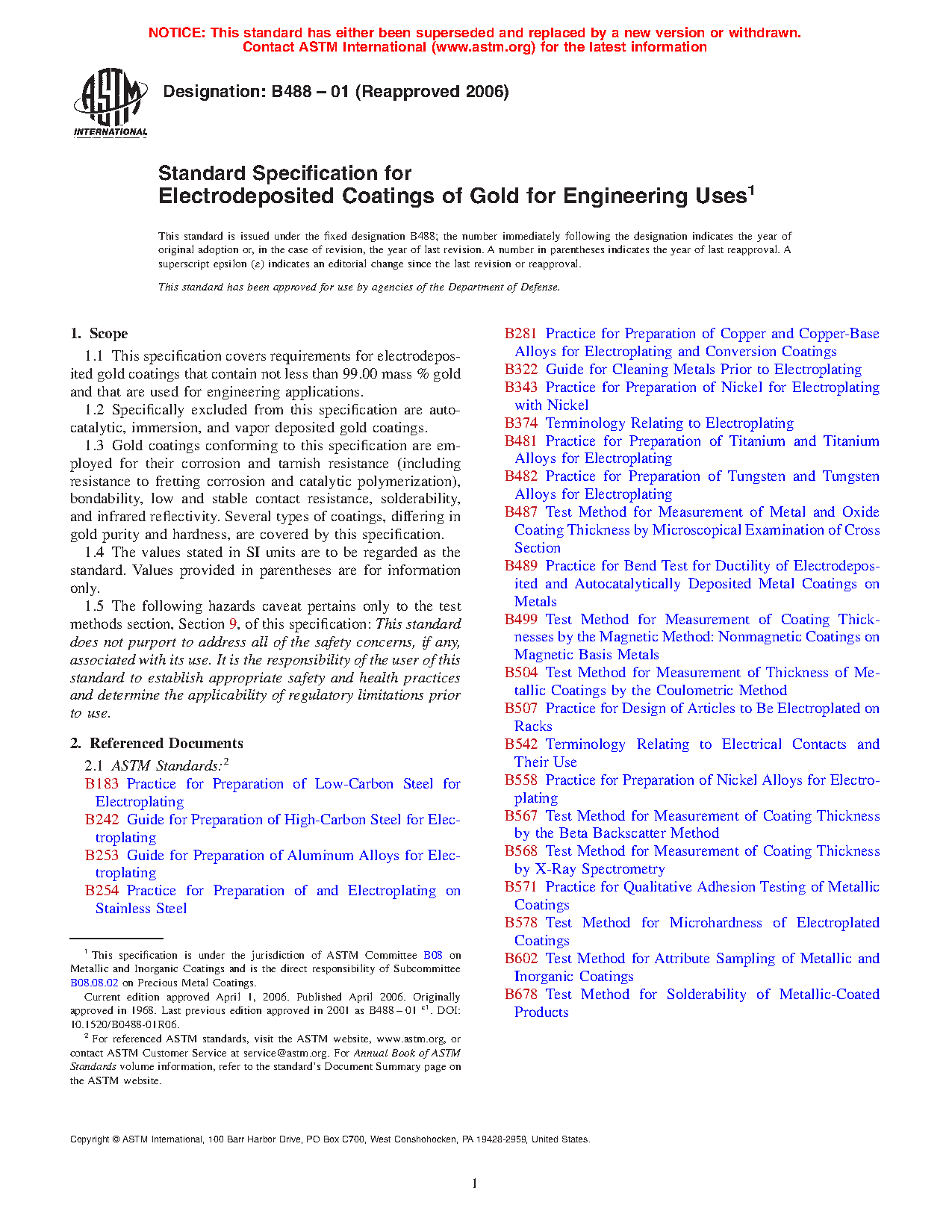 1.1 This specification covers requirements for electrodeposited gold coatings that contain not less than 99.00 mass % gold and that are used for engineering applications.
