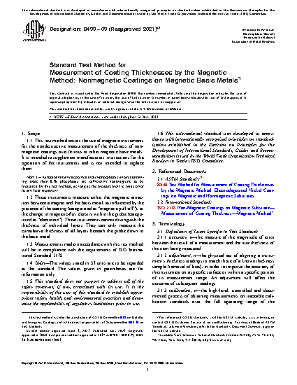 1.1 This test method covers the use of magnetic instruments for the nondestructive measurement of the thickness of nonmagnetic coatings over ferrous or other magnetic base metals. It is intended to supplement manufacturers’ instructions for the operation of the instruments and is not intended to replace them.