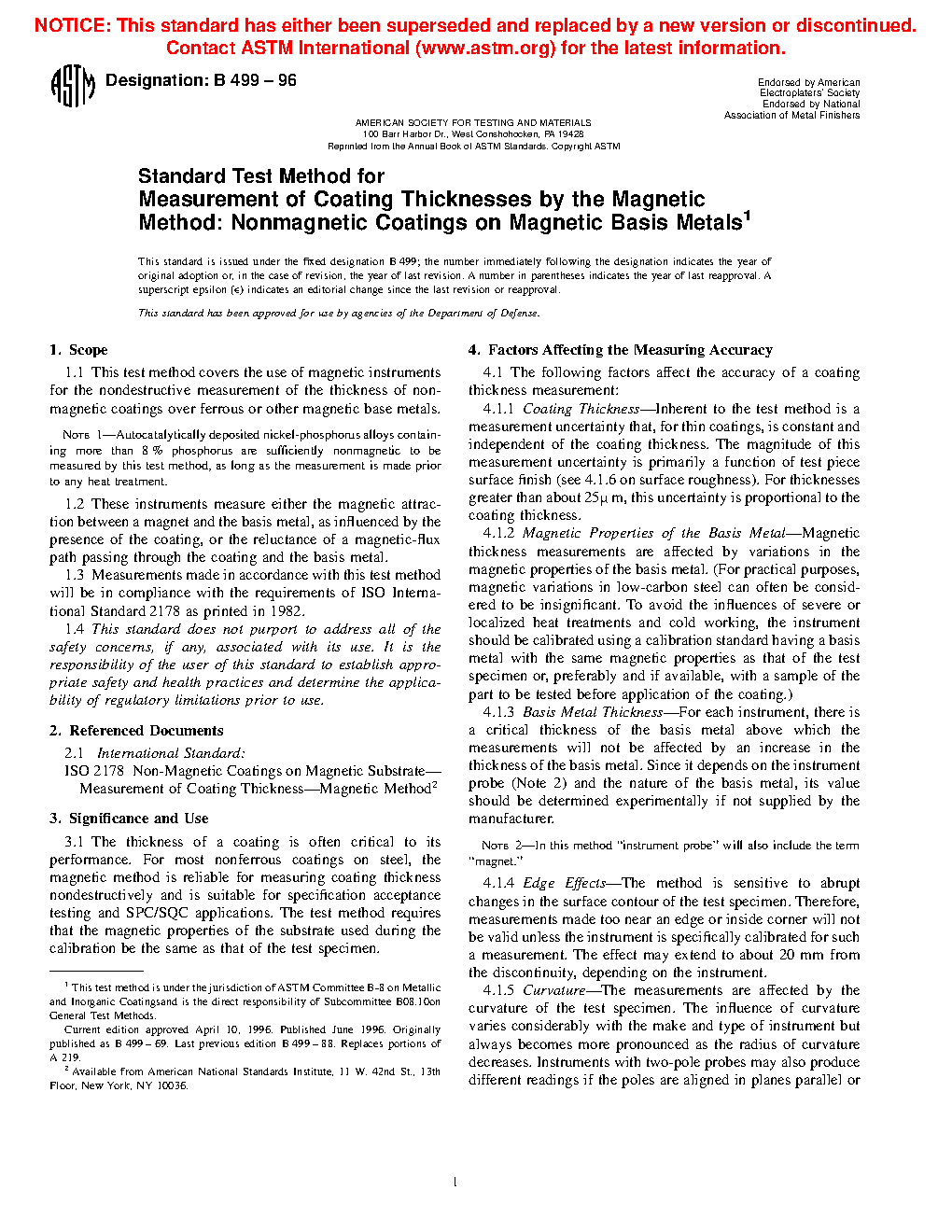This test method should not be used to determine the thickness of electrodeposited nickel coatings on steel. Test Method B 530