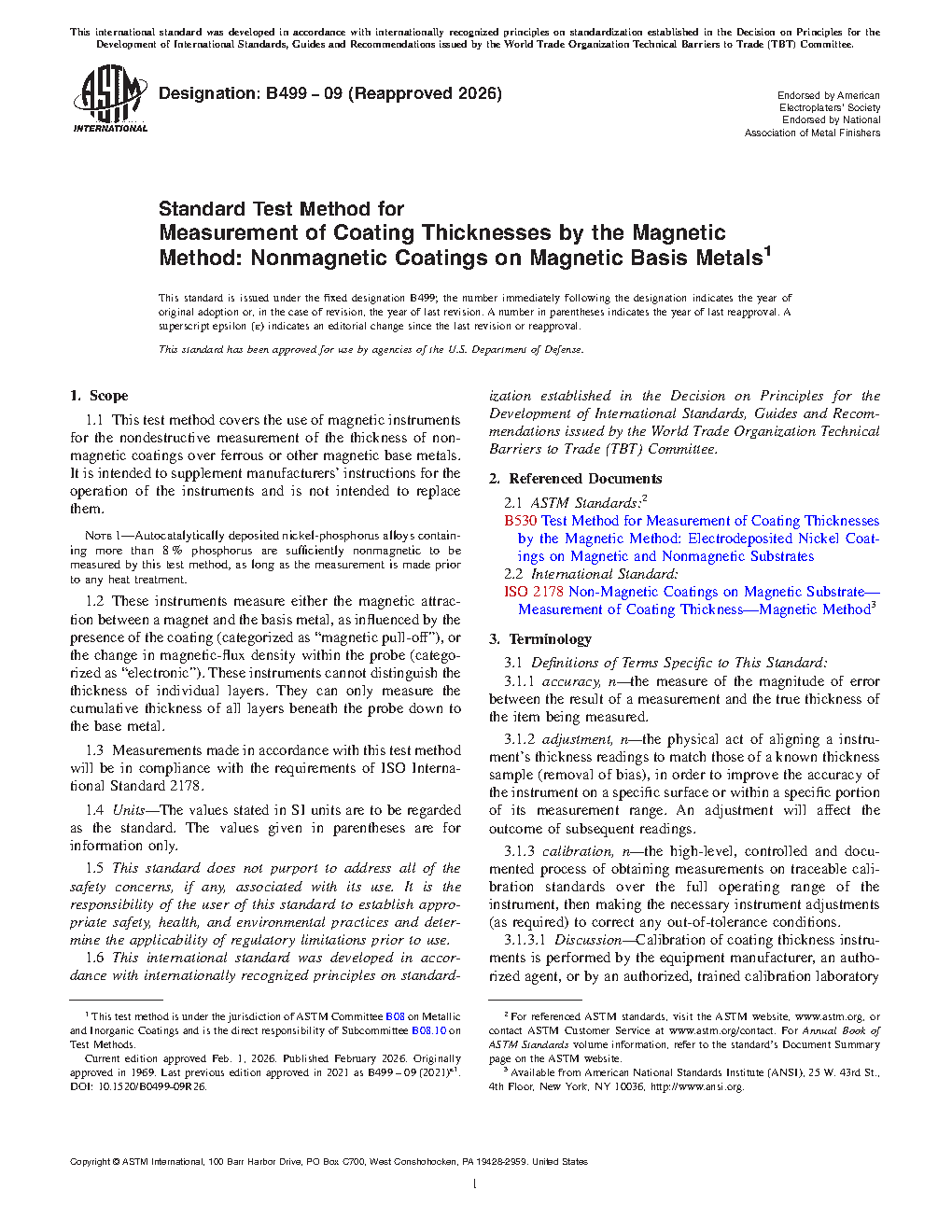 1.3 Measurements made in accordance with this test method will be in compliance with the requirements of ISO International Standard 2178 as printed in 1982.