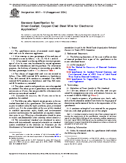 1.1 This specification covers silver-coated, round, copper-clad steel wire for electronic application.