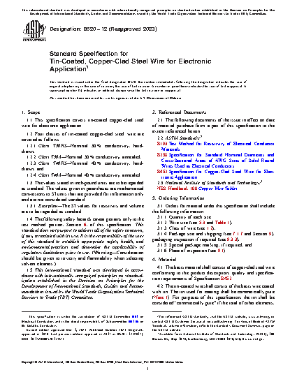 1.1 This specification covers tin-coated copper-clad steel wire for electronic application.