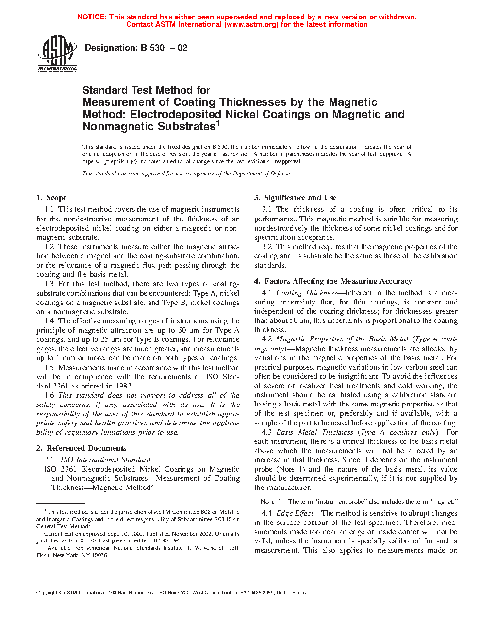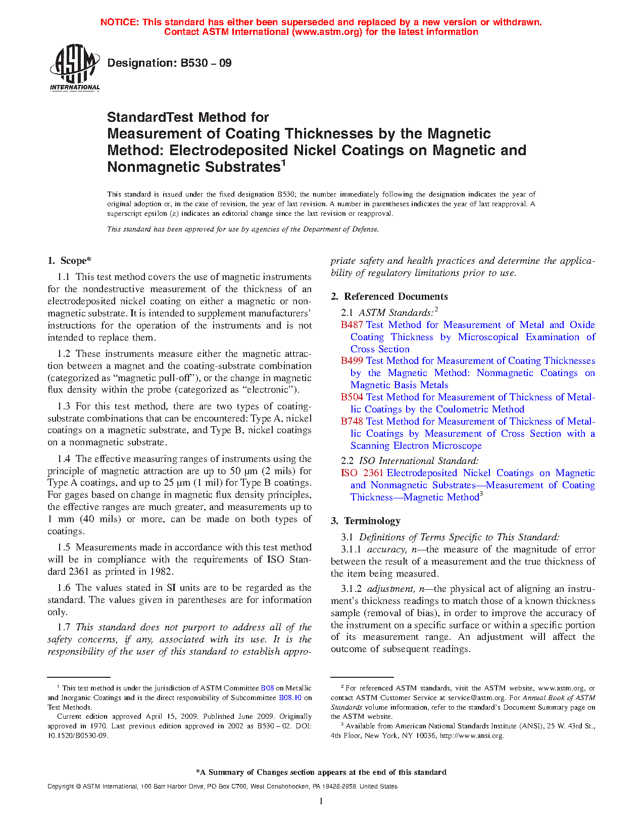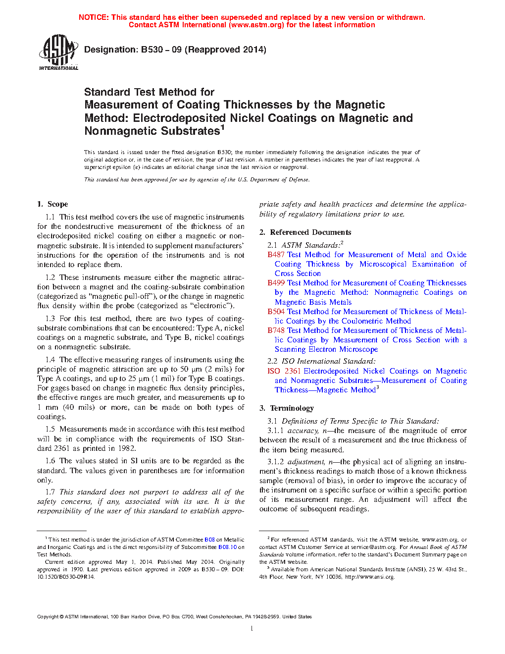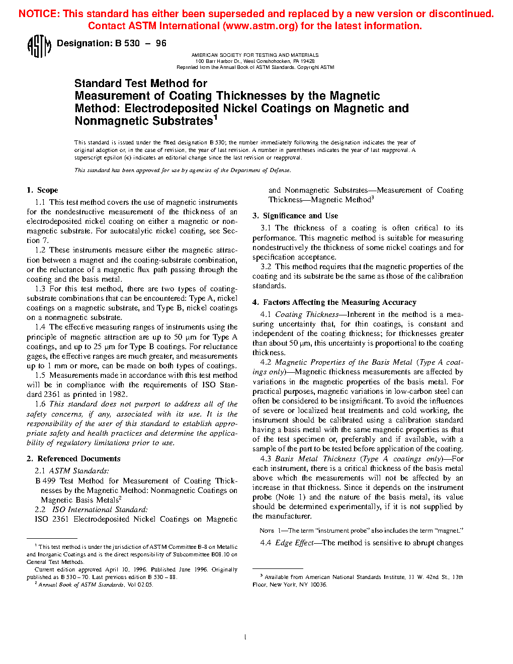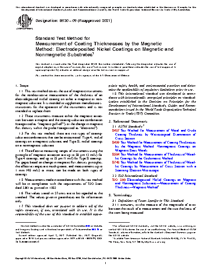 5.1 The thickness of a coating is often critical to its performance. This magnetic method is suitable for measuring nondestructively the thickness of some nickel coatings and for specification acceptance.