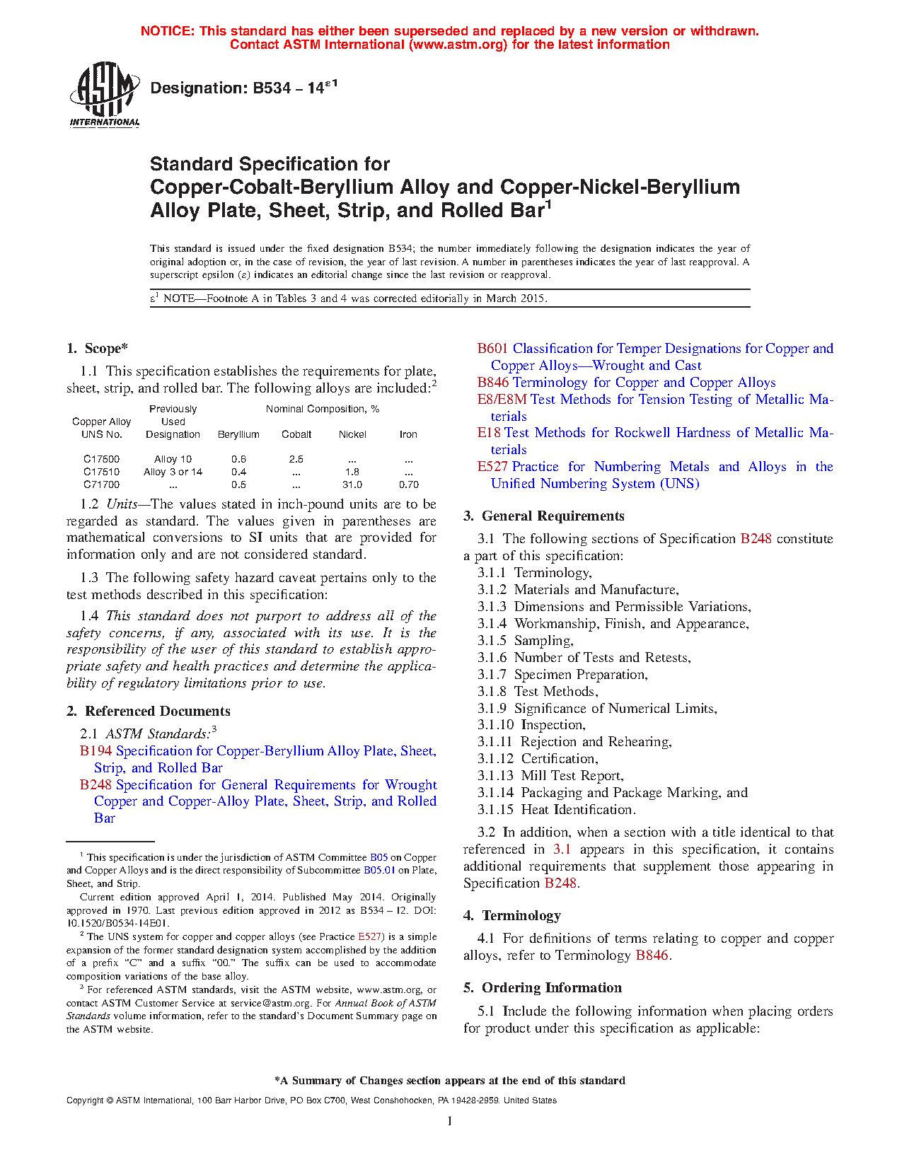 1.1 This specification establishes the requirements for plate, sheet, strip, and rolled bar. The following alloys are included:2