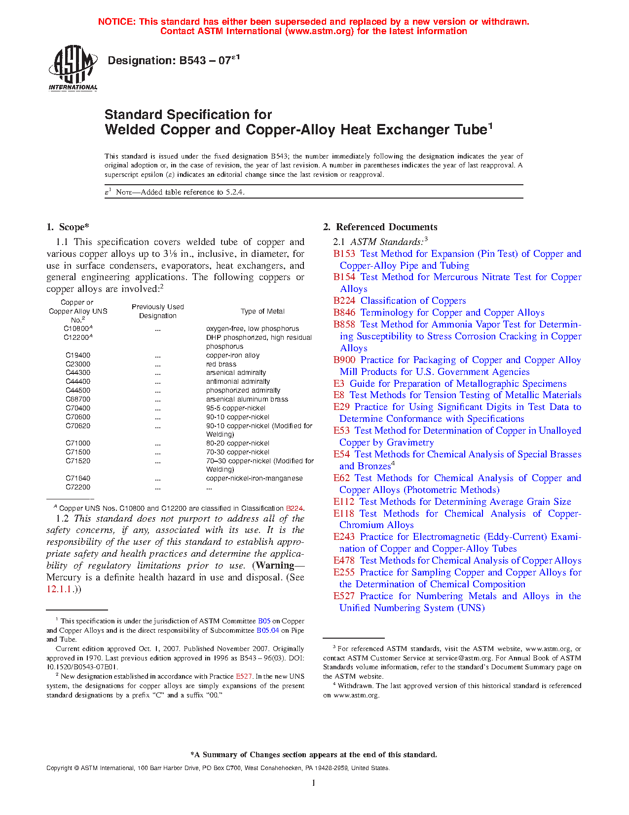 | Copper or Copper Alloy UNS No.2 | Previously Used Designation | Type of Metal |