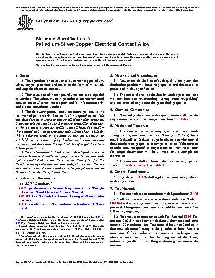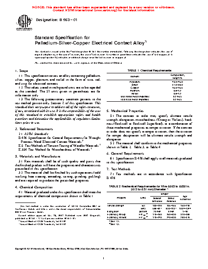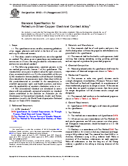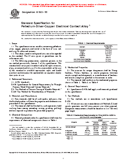 1.1 This specification covers an alloy containing palladium, silver, copper, platinum, and nickel in the form of wire, rod, and strip for electrical contacts.