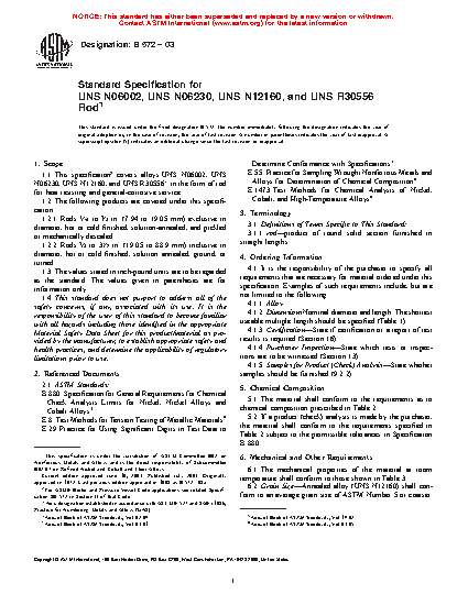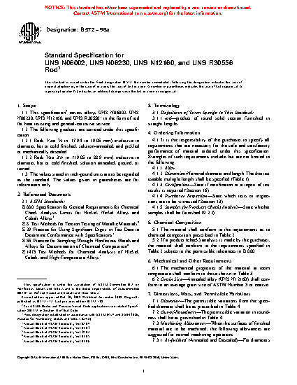 1.1 This specification covers alloys UNS N06002, UNS N06230, UNS N12160, and UNS R30556* in the form of rod for heat resisting and general-corrosive service.