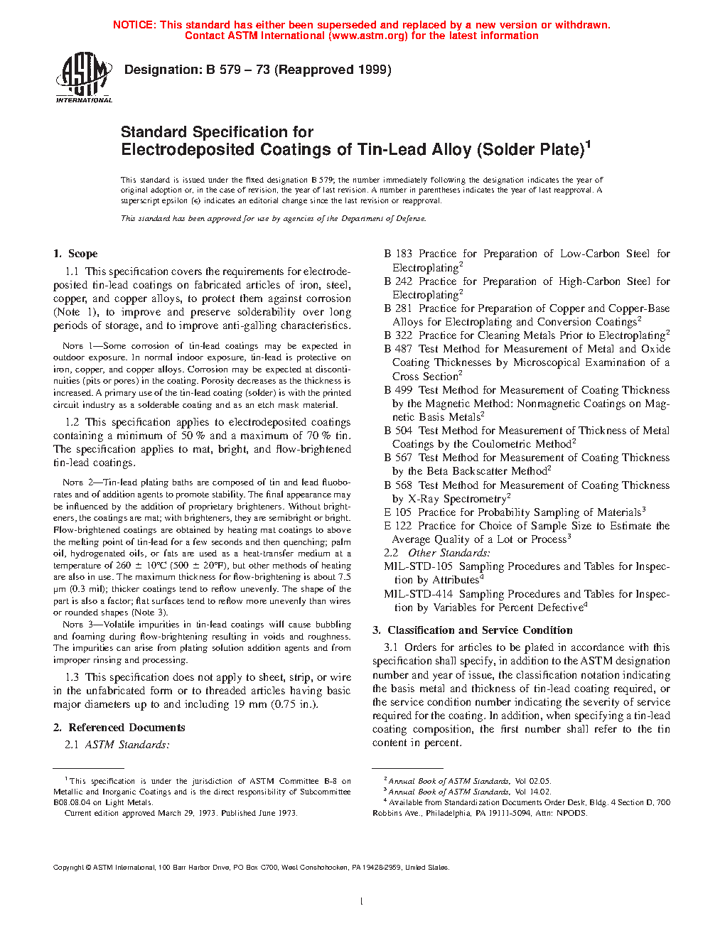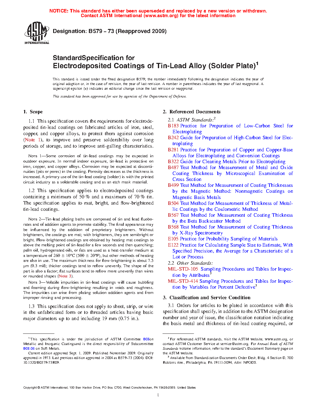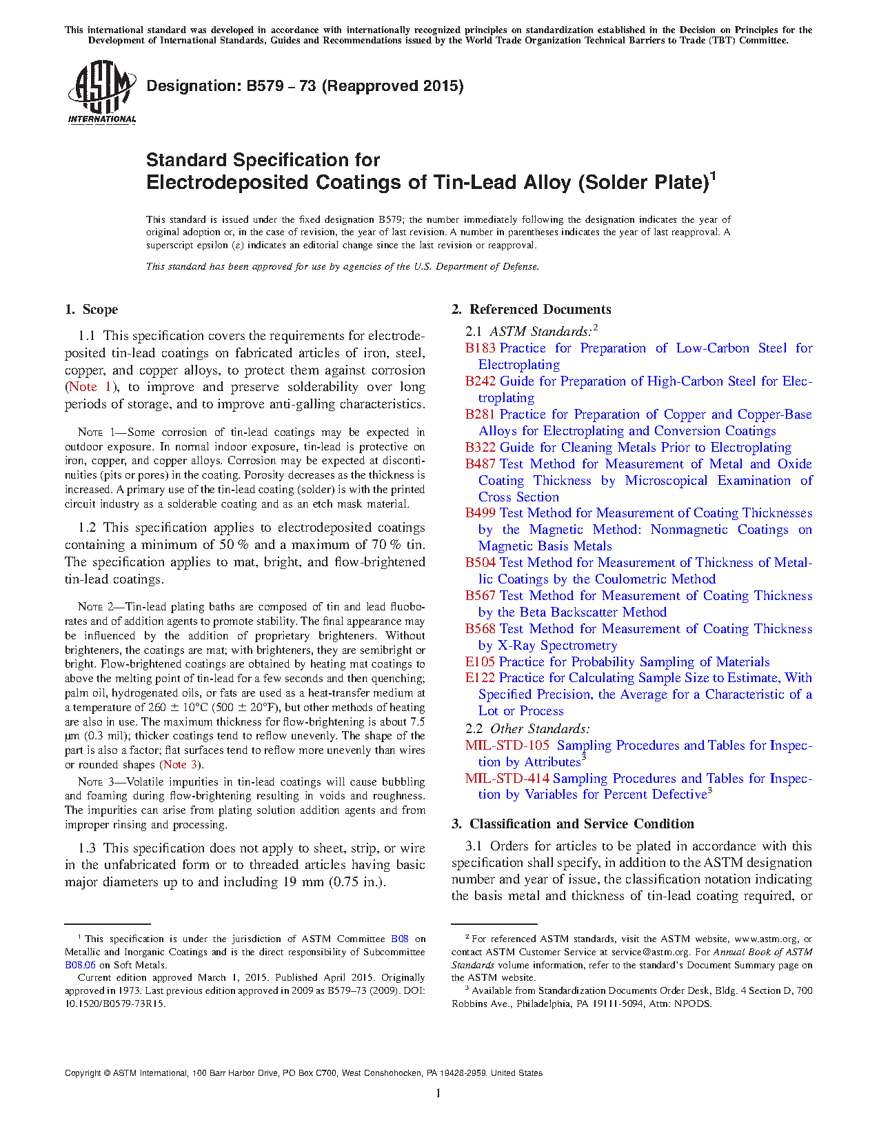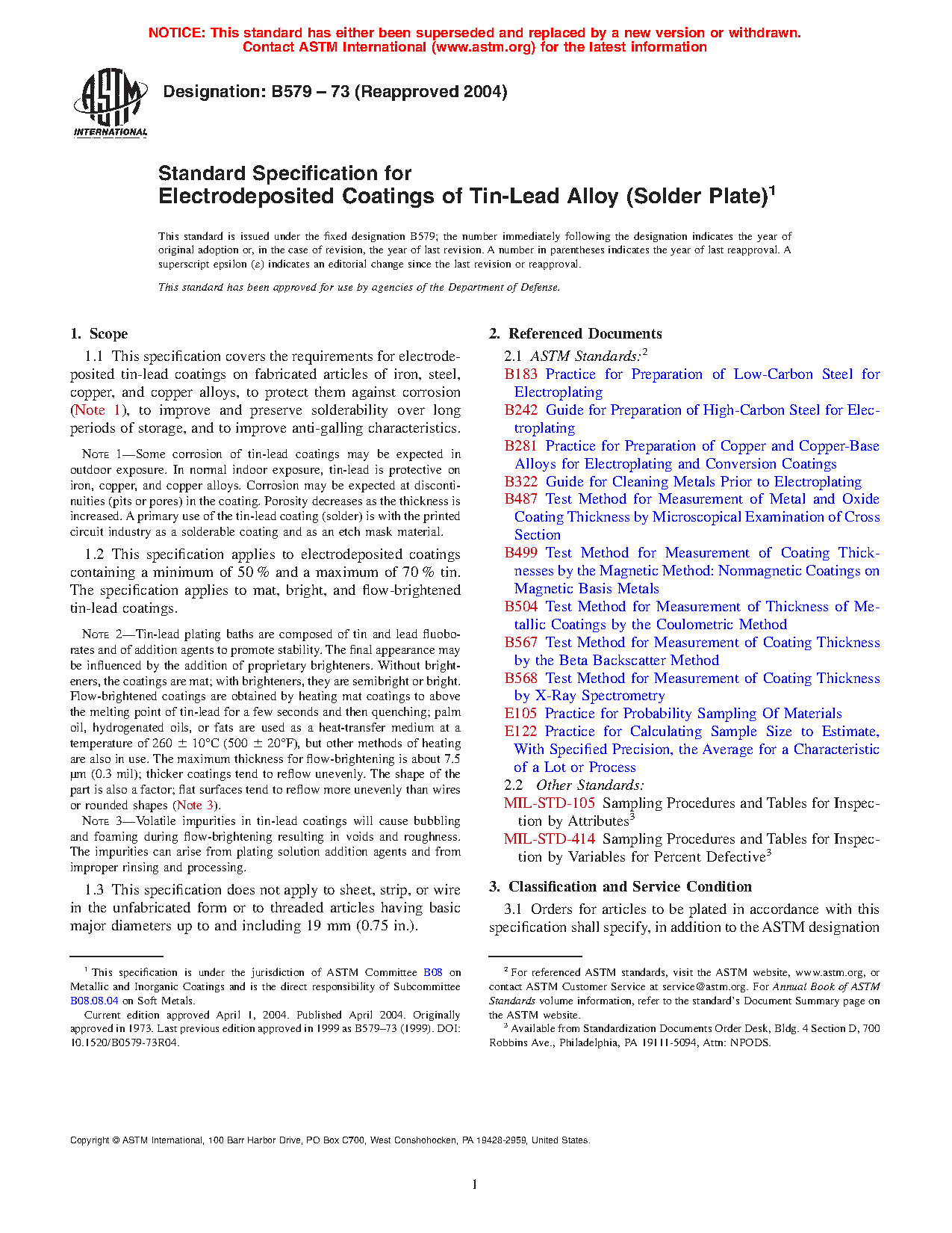 1.2 This specification applies to electrodeposited coatings containing a minimum of 50 % and a maximum of 70 % tin. The specification applies to mat, bright, and flow-brightened tin-lead coatings.