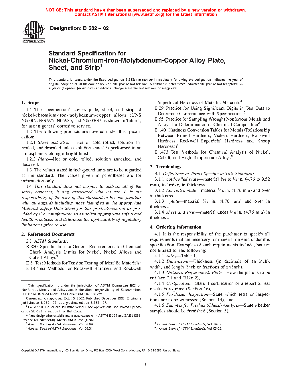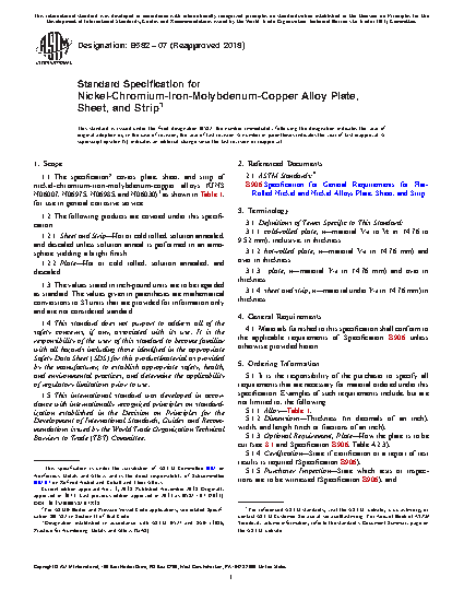 Standard Specification for Nickel-Chromium-Iron-Molybdenum-Copper Alloy Plate, Sheet, and Strip