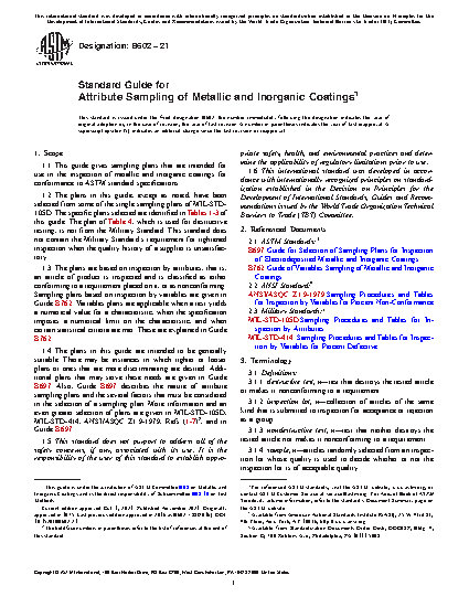 1.1 This guide gives sampling plans that are intended for use in the inspection of metallic and inorganic coatings for conformance to ASTM standard specifications.