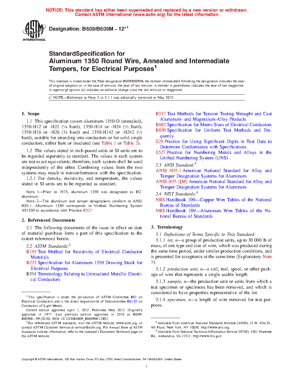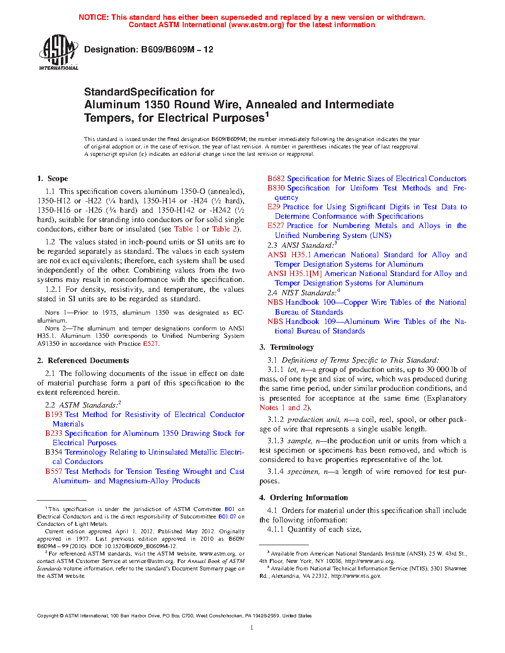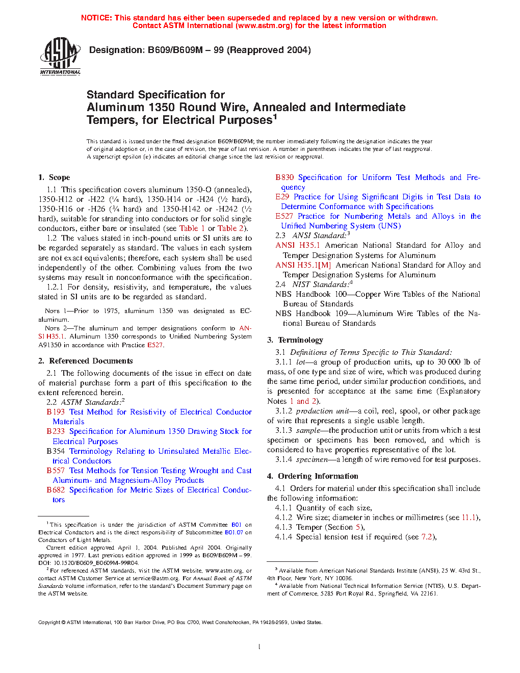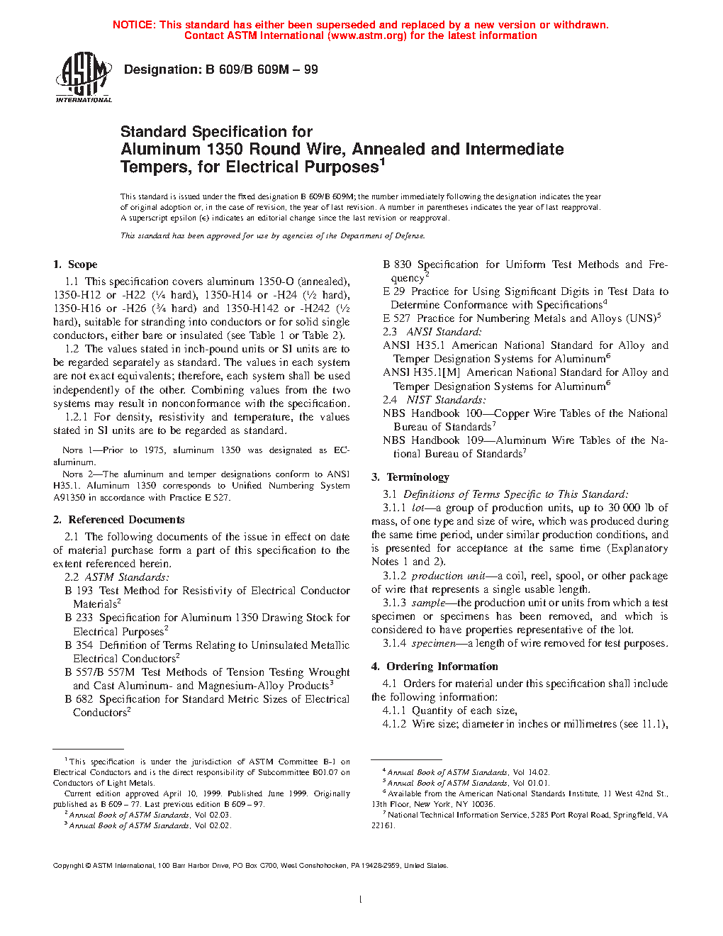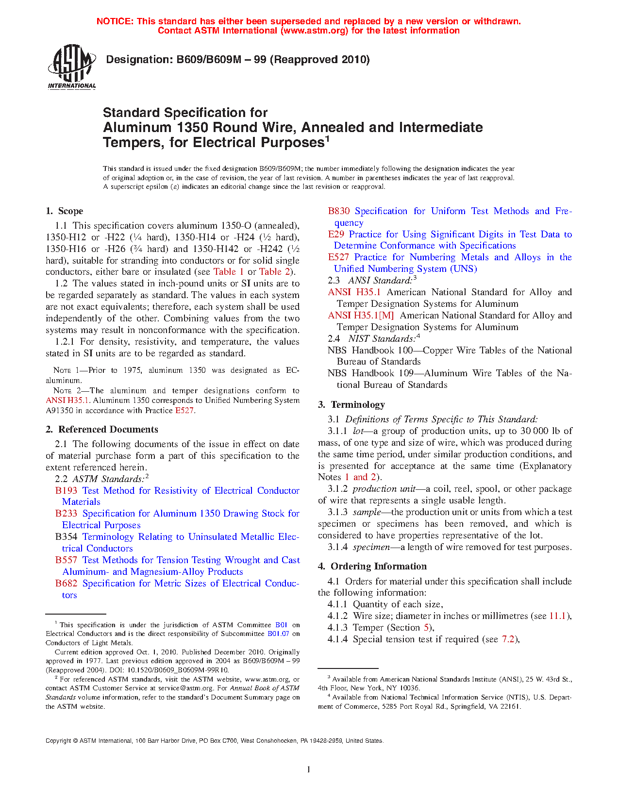 Note 2: The aluminum and temper designations conform to ANSI H35.1. Aluminum 1350 corresponds to Unified Numbering System A91350 in accordance with Practice E527.
