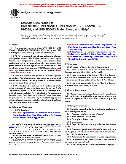 1.1 This specification covers nickel-iron-chromium-molybdenum-copper-nitrogen low-carbon alloy, nickel-iron-chromium-silicon alloy, chromium-nickel-iron-nitrogen low-carbon alloy, iron-nickel-chromium-molybdenum-copper-nitrogen alloy, and nickel-iron-chromium-molybdenum-nitrogen alloy plate, sheet, and strip in the annealed temper.