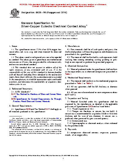 1.1 This specification covers 72 % silver-28 % copper (eutectic) alloy rod, wire, strip, and sheet material for electrical contacts.
