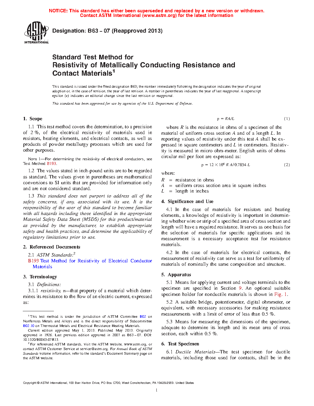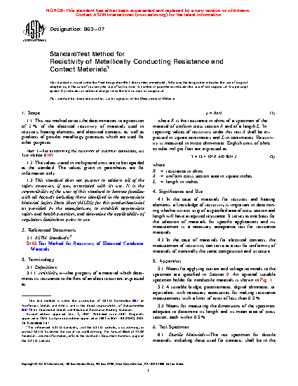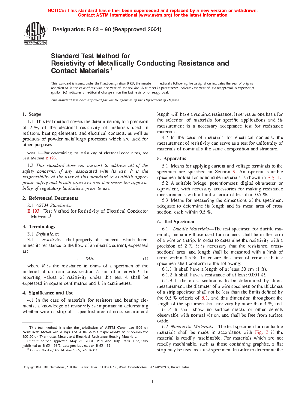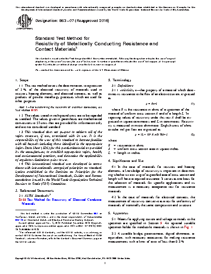 4.1 In the case of materials for resistors and heating elements, a knowledge of resistivity is important in determining whether wire or strip of a specified area of cross section and length will have a required resistance. It serves as one basis for the selection of materials for specific applications and its measurement is a necessary acceptance test for resistance materials.
