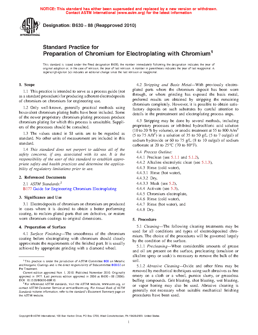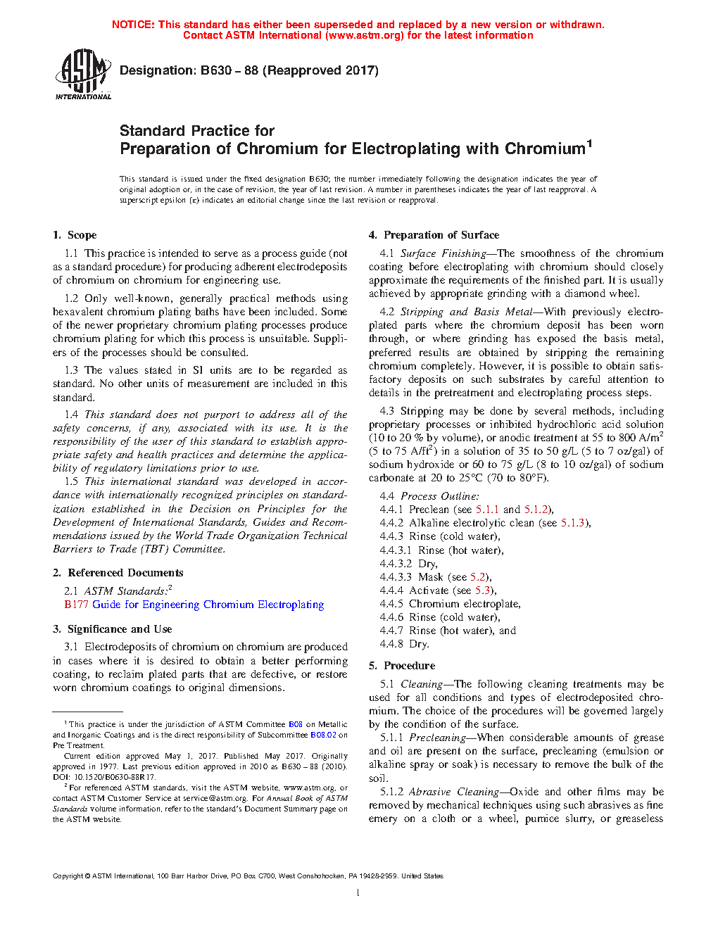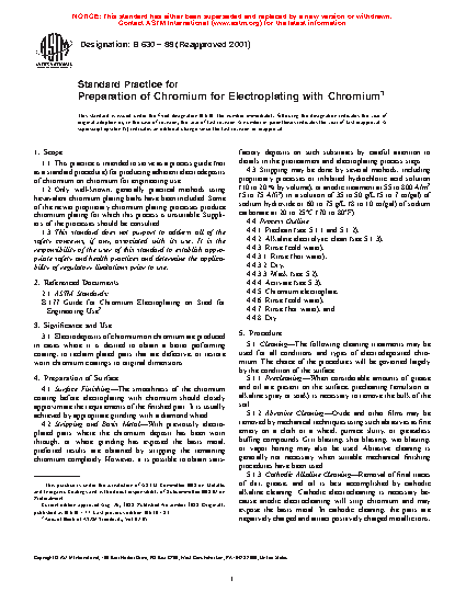 1.1 This practice is intended to serve as a process guide (not as a standard procedure) for producing adherent electrodeposits of chromium on chromium for engineering use.