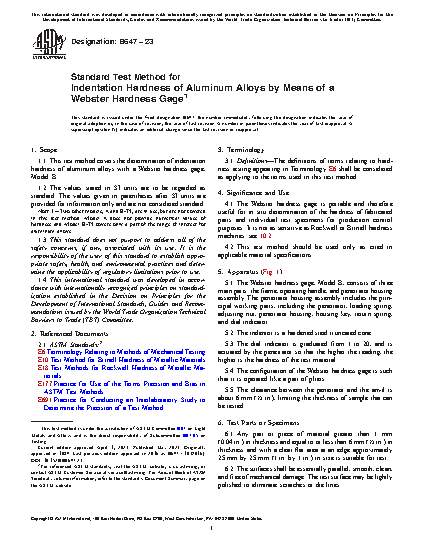 1.1 This test method covers the determination of indentation hardness of aluminum alloys with a Webster hardness gage, Model B.