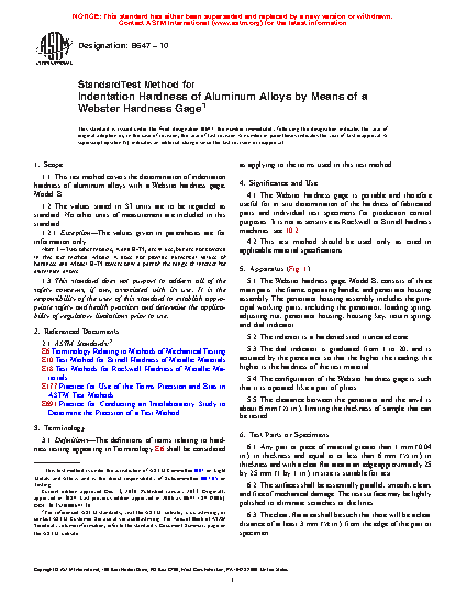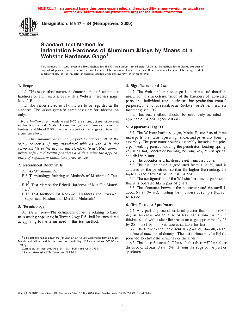 4.1 The Webster hardness gage is portable and therefore useful for in situ determination of the hardness of fabricated parts and individual test specimens for production control purposes. It is not as sensitive as Rockwell or Brinell hardness machines; see 10.2.