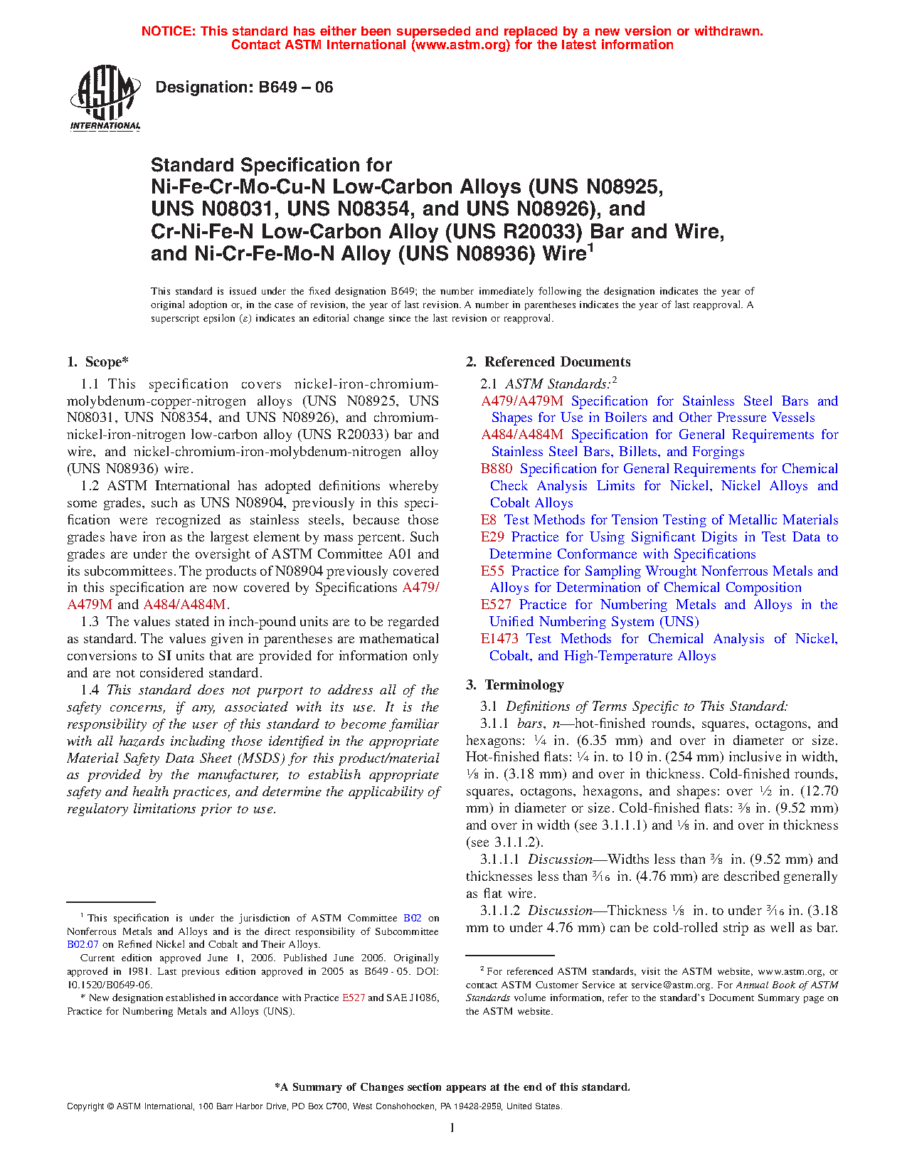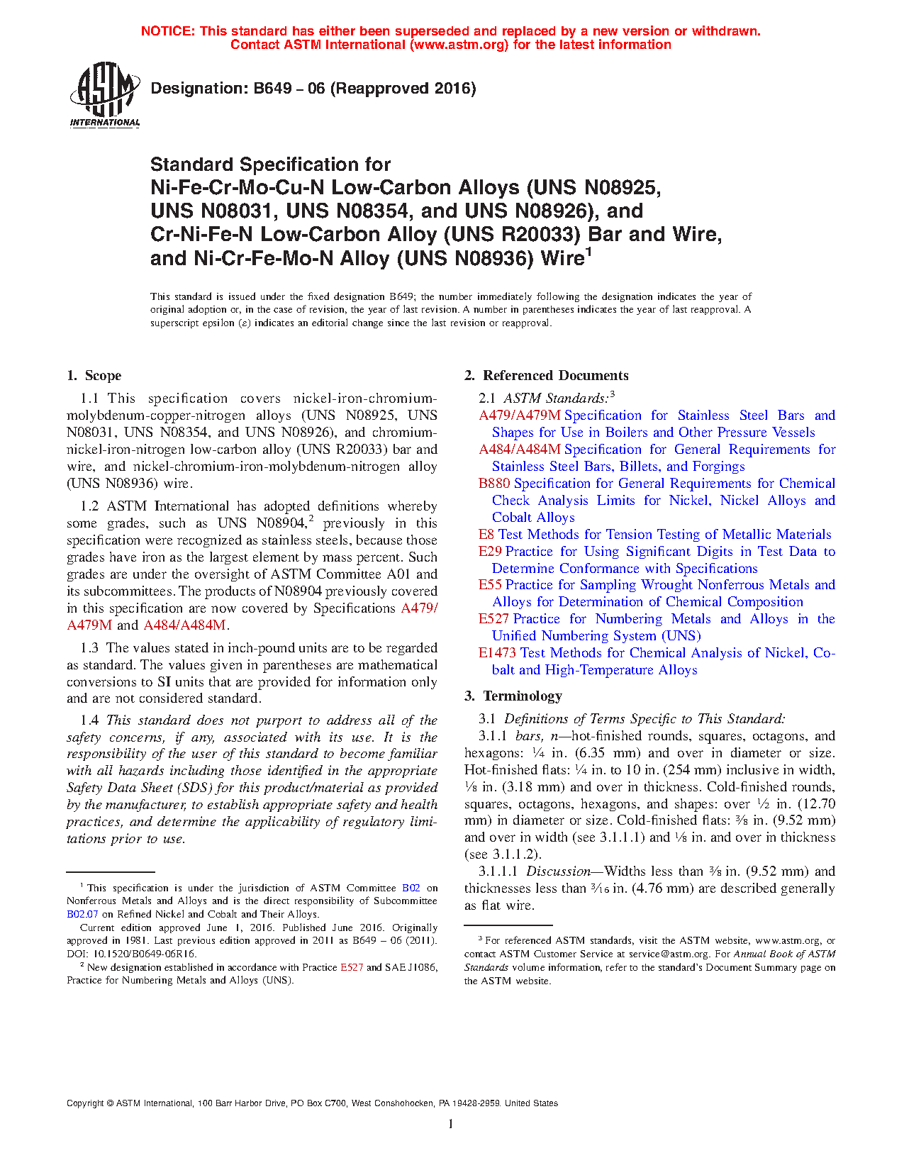 ASTM B649-06(2016)