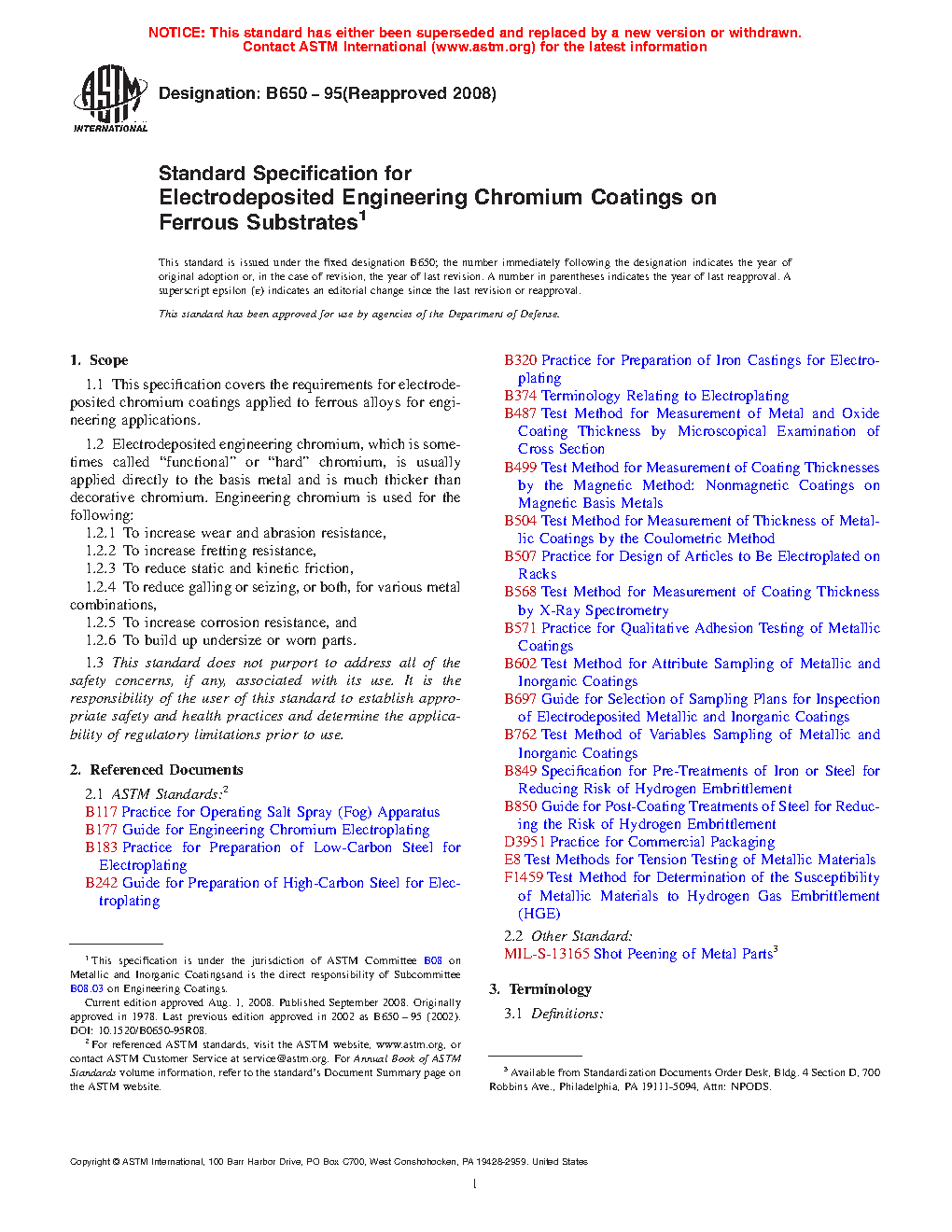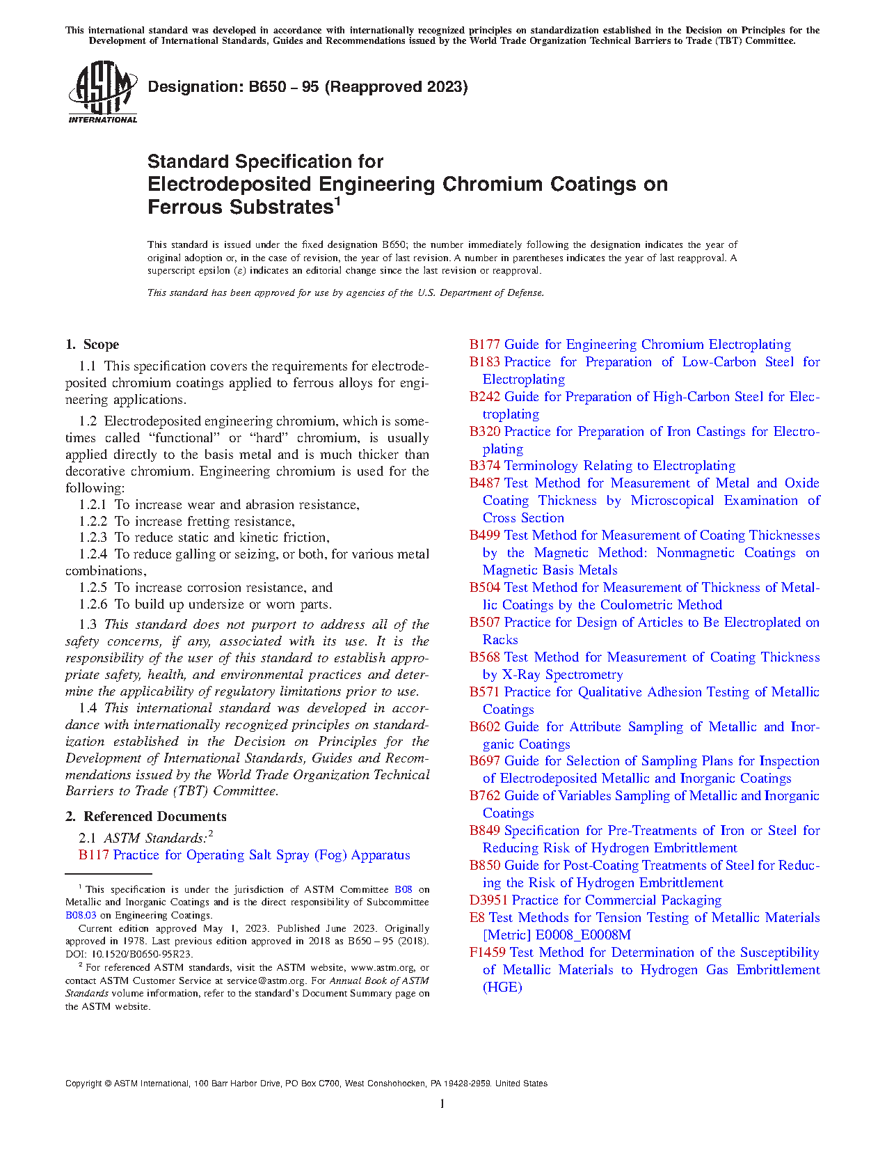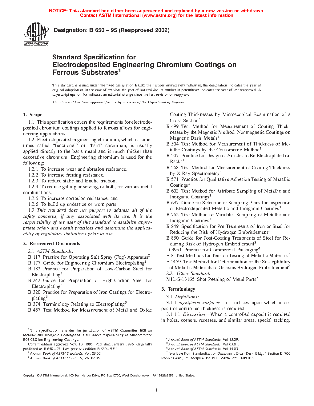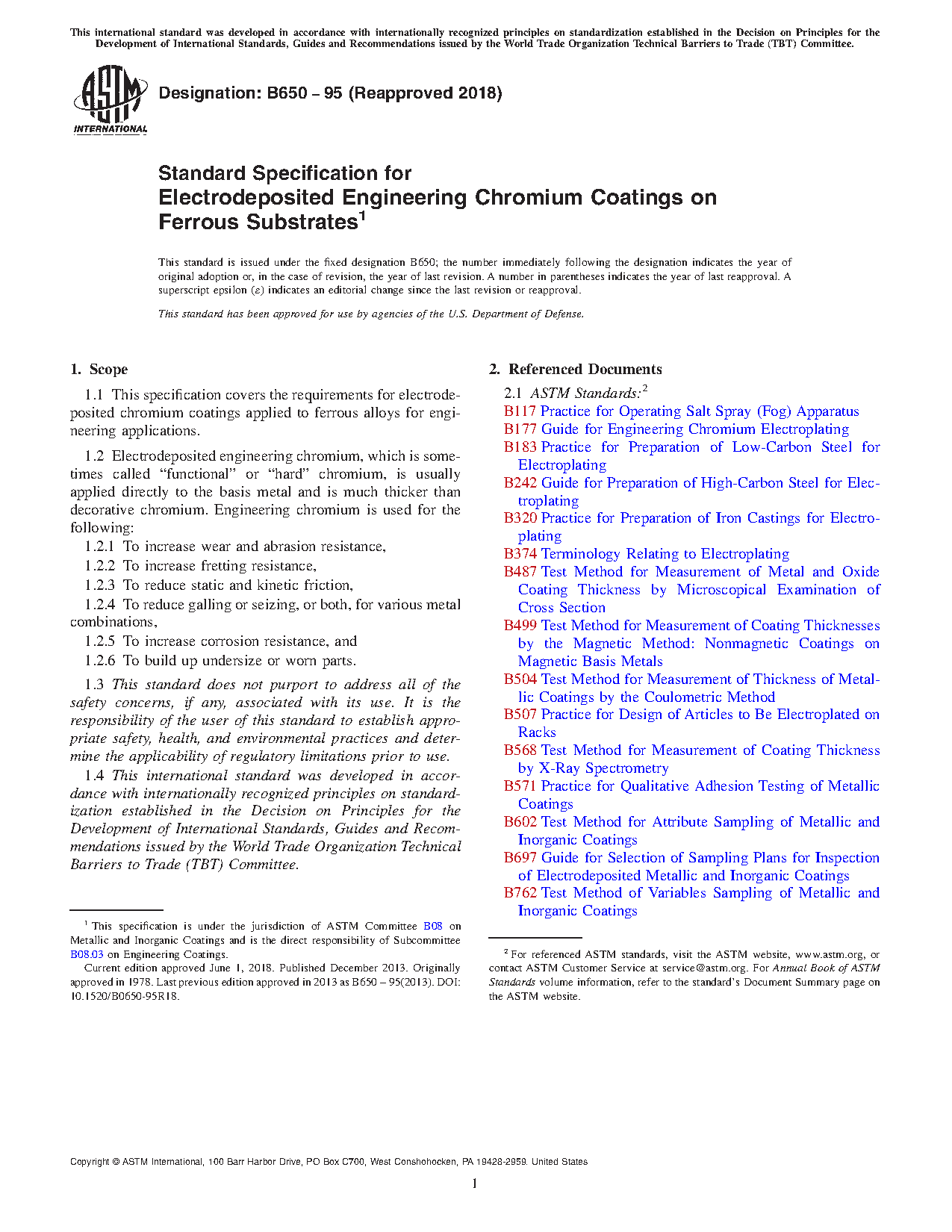 1.1 This specification covers the requirements for electrodeposited chromium coatings applied to ferrous alloys for engineering applications.