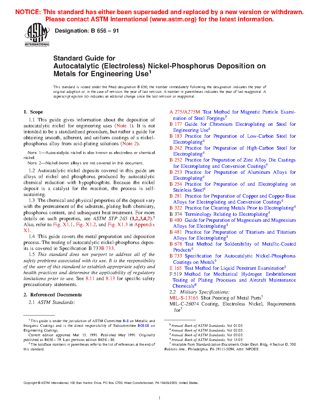 1.4 This guide covers the metal preparation and deposition process. The testing of autocatalytic nickel-phosphorus deposits is covered in Specification B733.