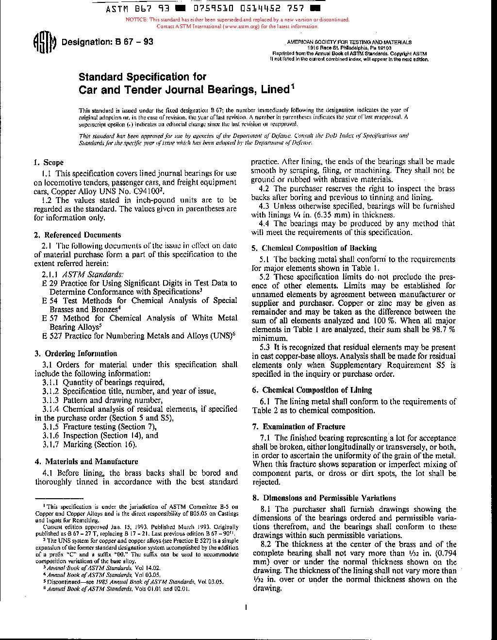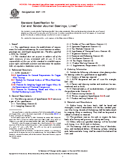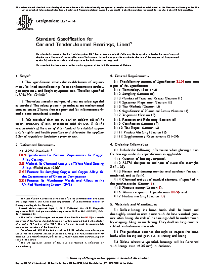 Standard Specification for Car and Tender Journal Bearings, Lined