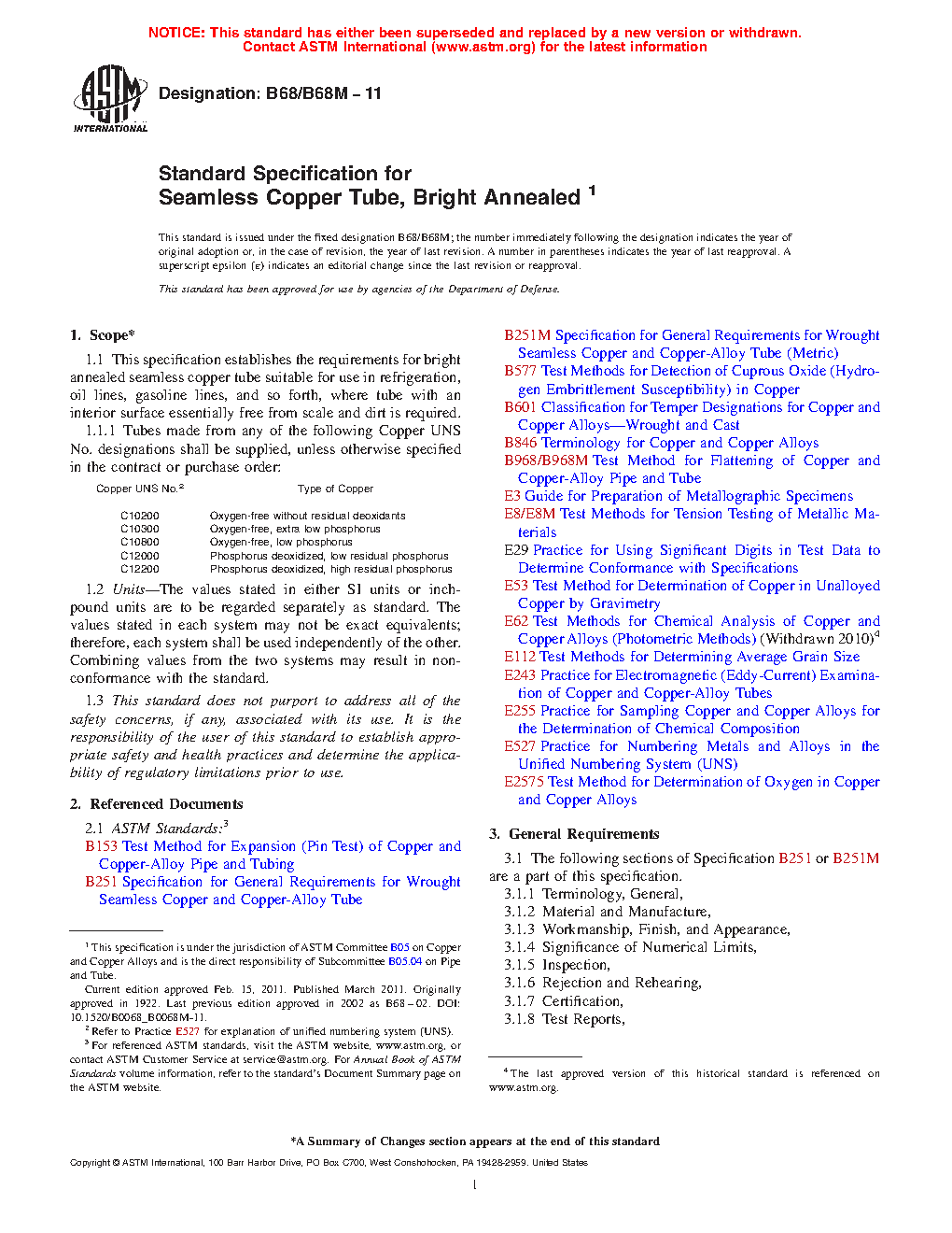 1.1.1 Tubes made from any of the following Copper UNS No. designations shall be supplied, unless otherwise specified in the contract or purchase order: