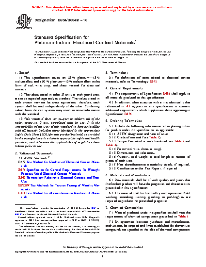 1.1 This specification covers an 80 % platinum—20 % iridium alloy, an 85 % platinum—15 % iridium alloy, and a 90 % platinum—10 % iridium alloy, in the form of rod, wire, strip, and sheet material for electrical contacts.