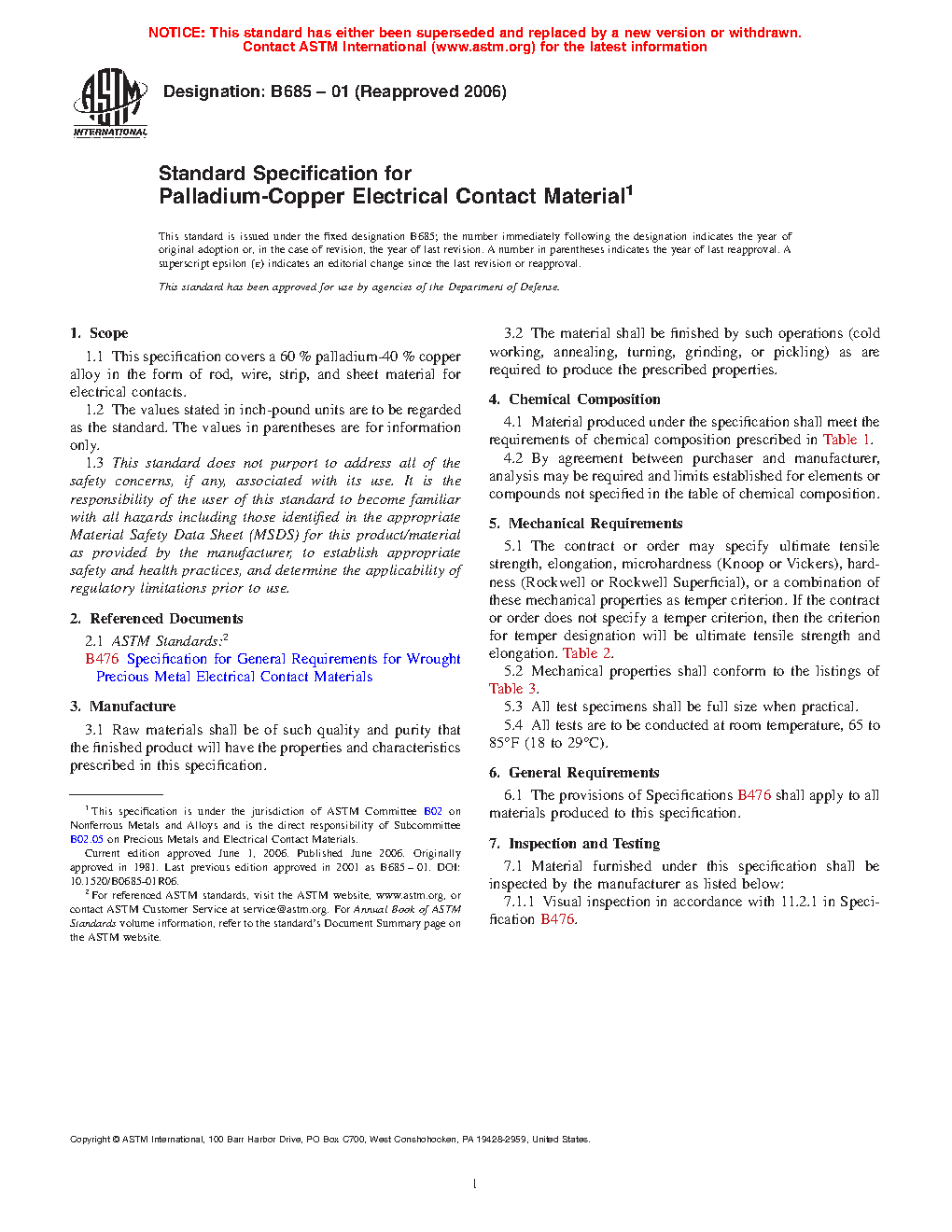 1.1 This specification covers a 60% palladium-40% copper alloy in the form of rod, wire, strip, and sheet material for electrical contacts.