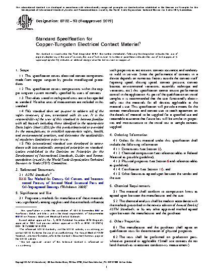 1.2 This specification covers compositions within the copper tungsten system normally specified by users of contacts.