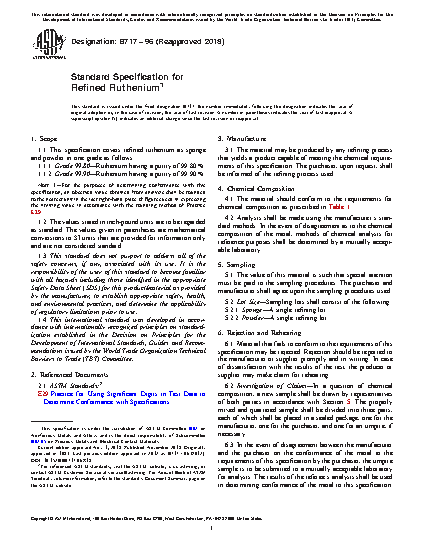 1.1 This specification covers refined ruthenium as sponge and powder in one grade as follows: