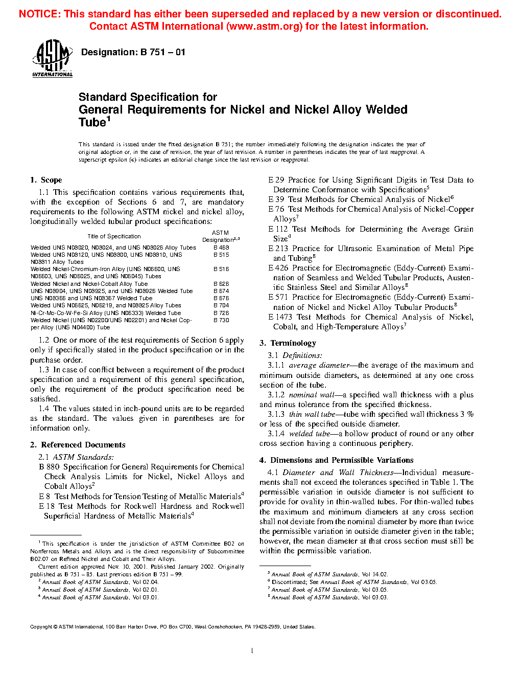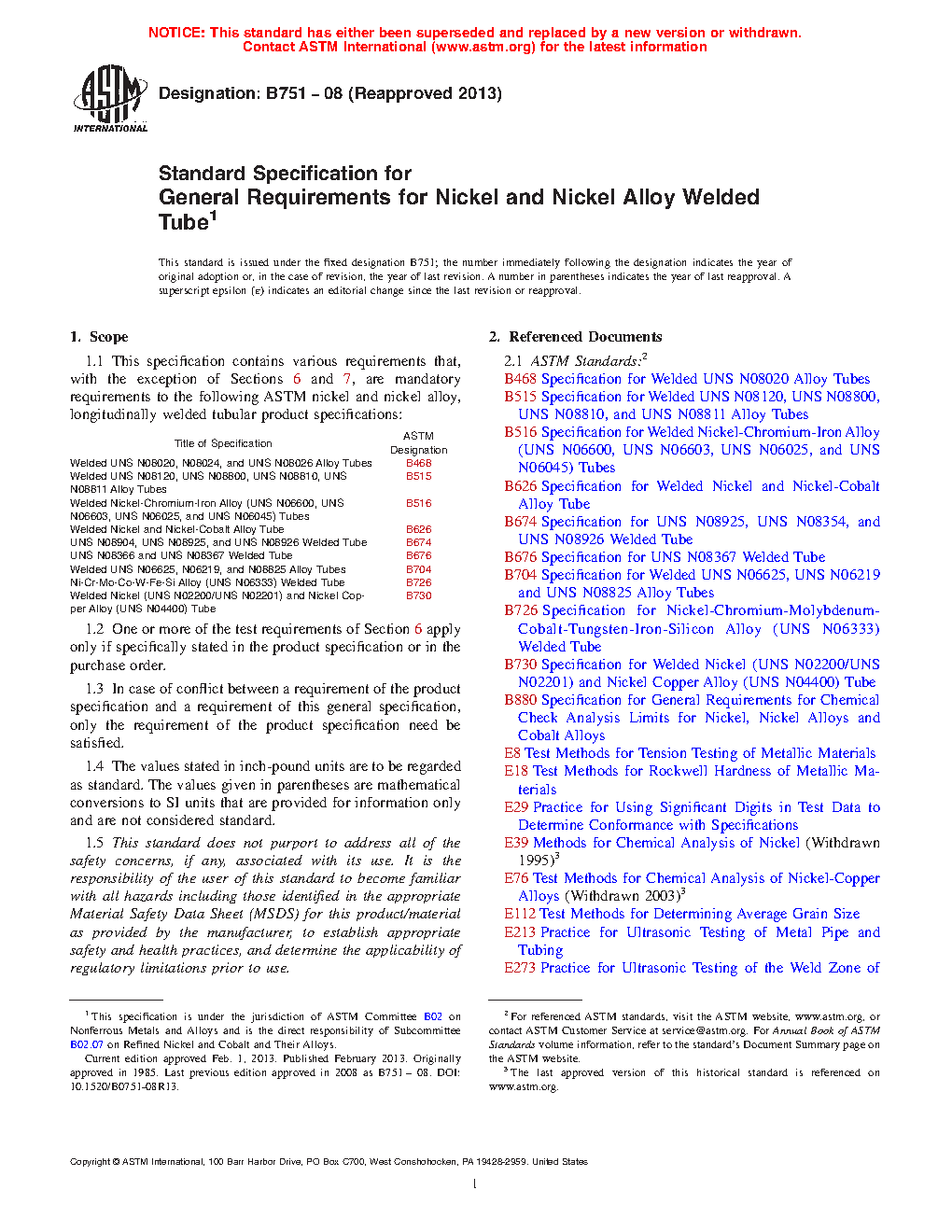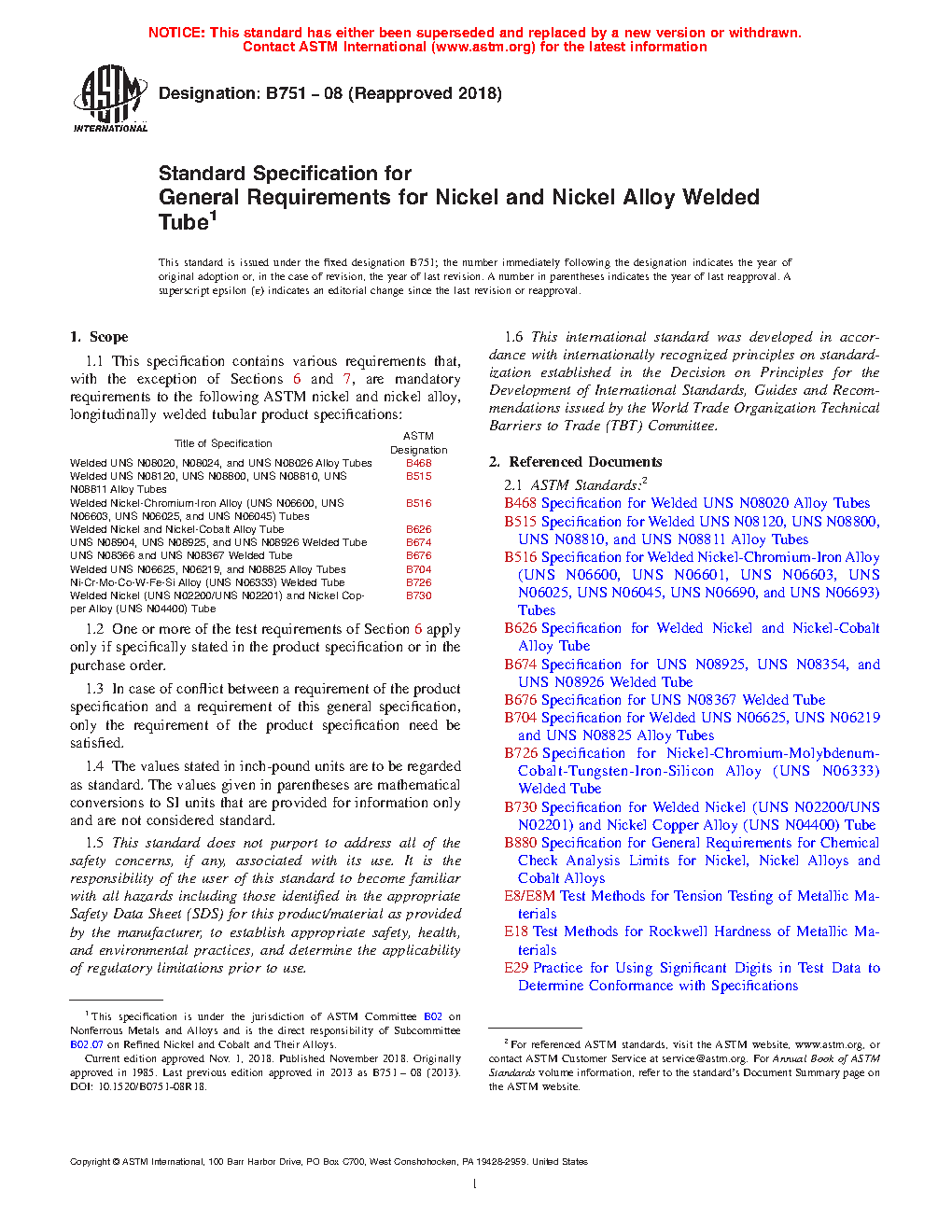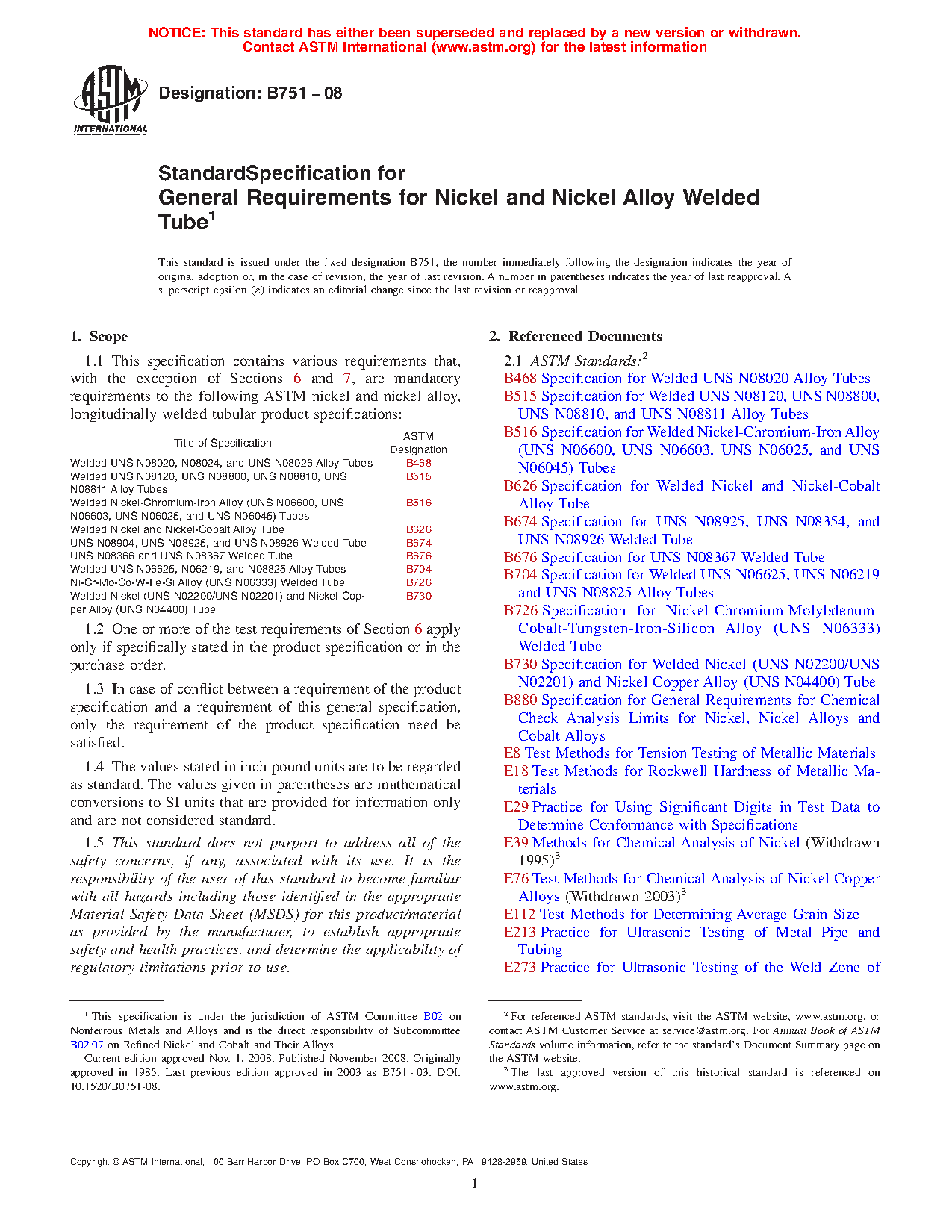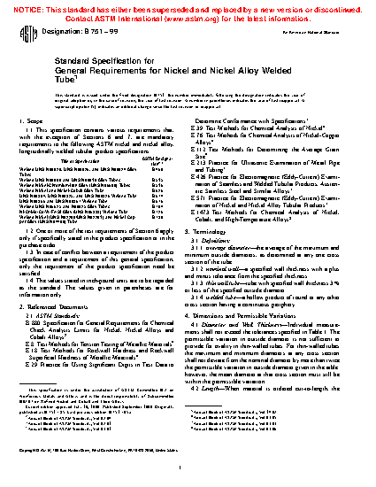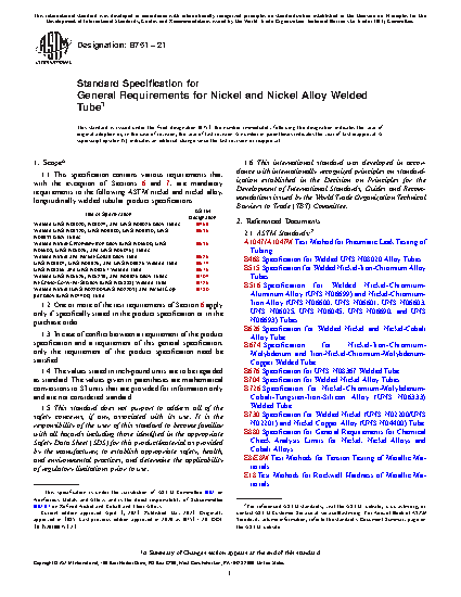 This general specification contains the mandatory requirements to the ASTM standards listed herein for longitudinally welded tubular products made from nickel and nickel alloys. In case of conflict, the requirements listed in the particular product specification takes precedence over those listed here.