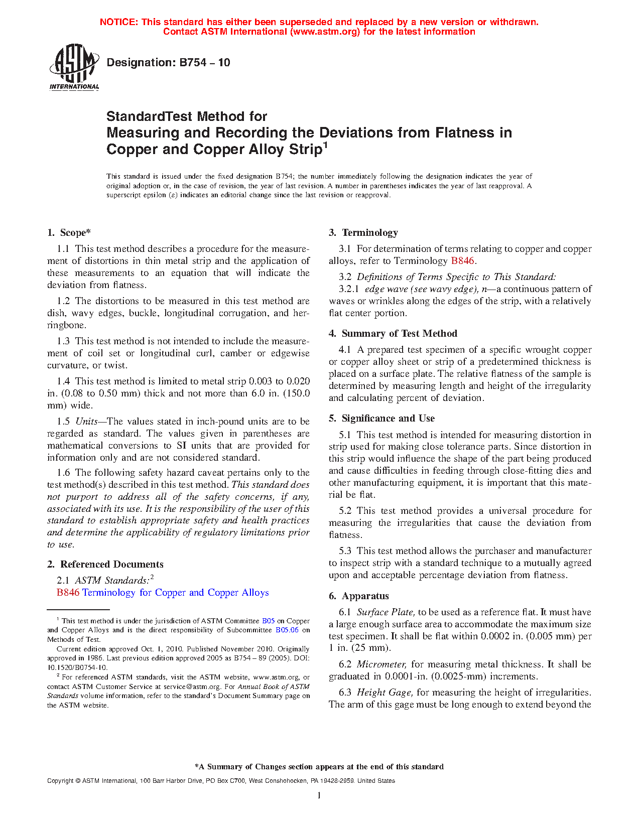 1.1 This test method establishes a procedure for the measurement of distortions in thin metal strip and the application of these measurements to an equation that will indicate the deviation from flatness.
