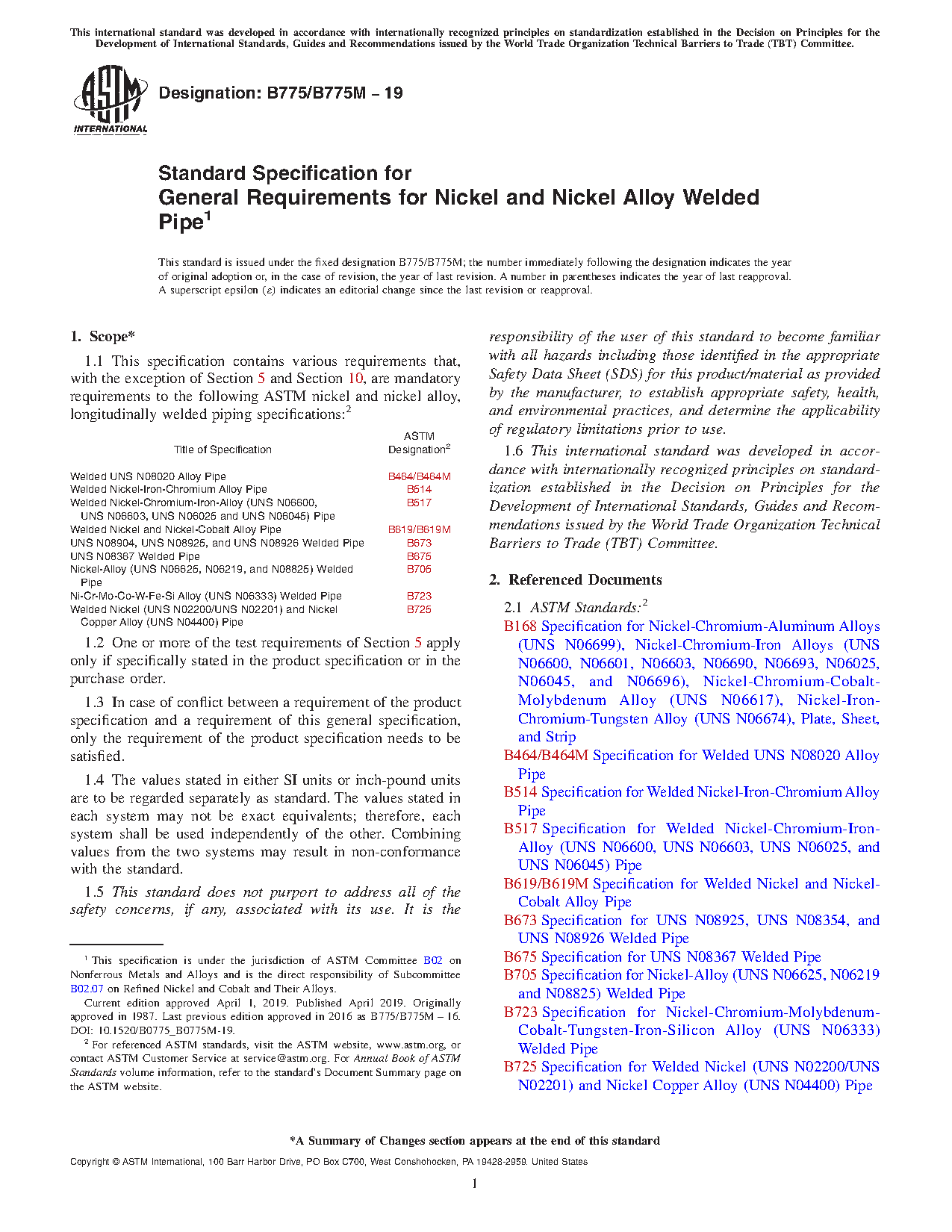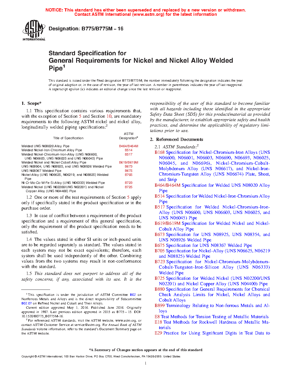 | Welded Nickel and Nickel-Cobalt Alloy Pipe | B619/B619M |