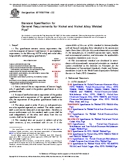1.1 This specification contains various requirements that, with the exception of Section 5 and Section 10, are mandatory requirements to the following ASTM nickel and nickel alloy, longitudinally welded piping specifications:2