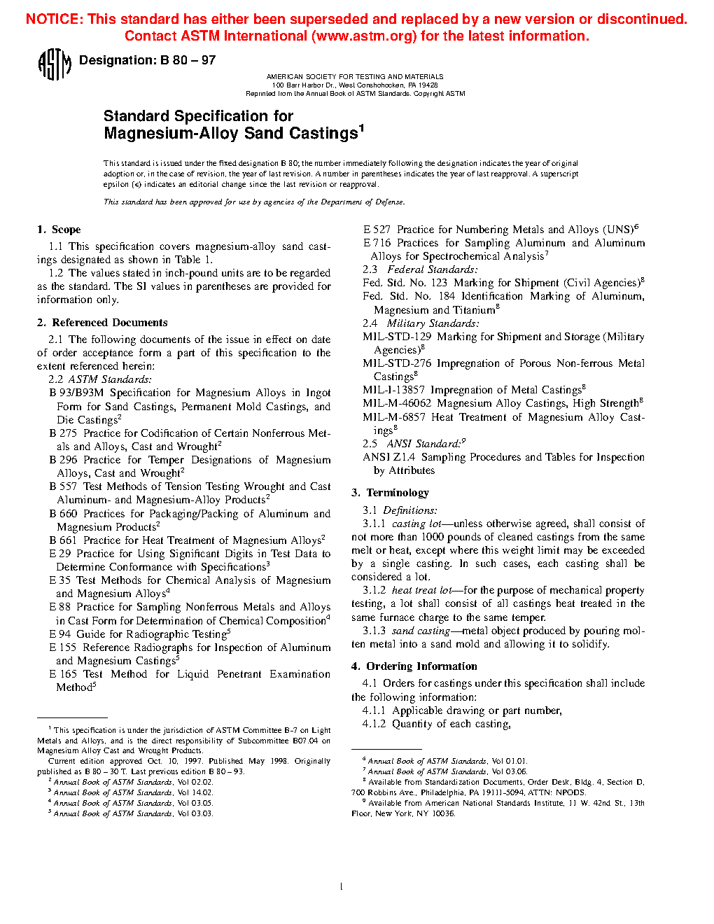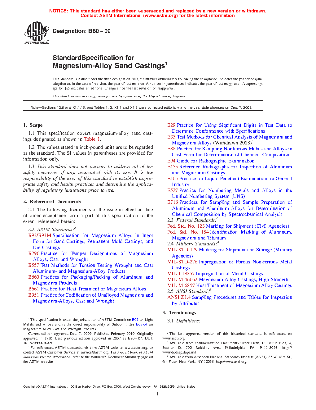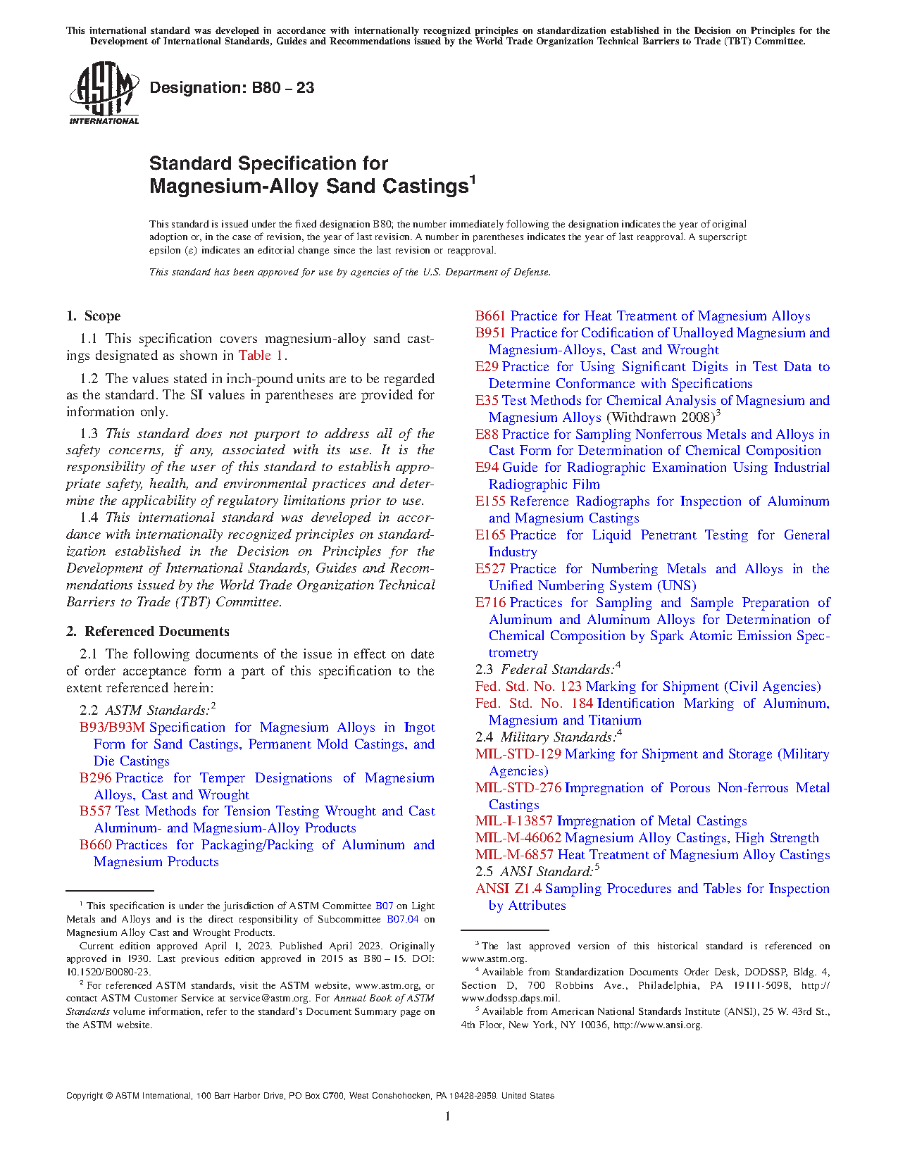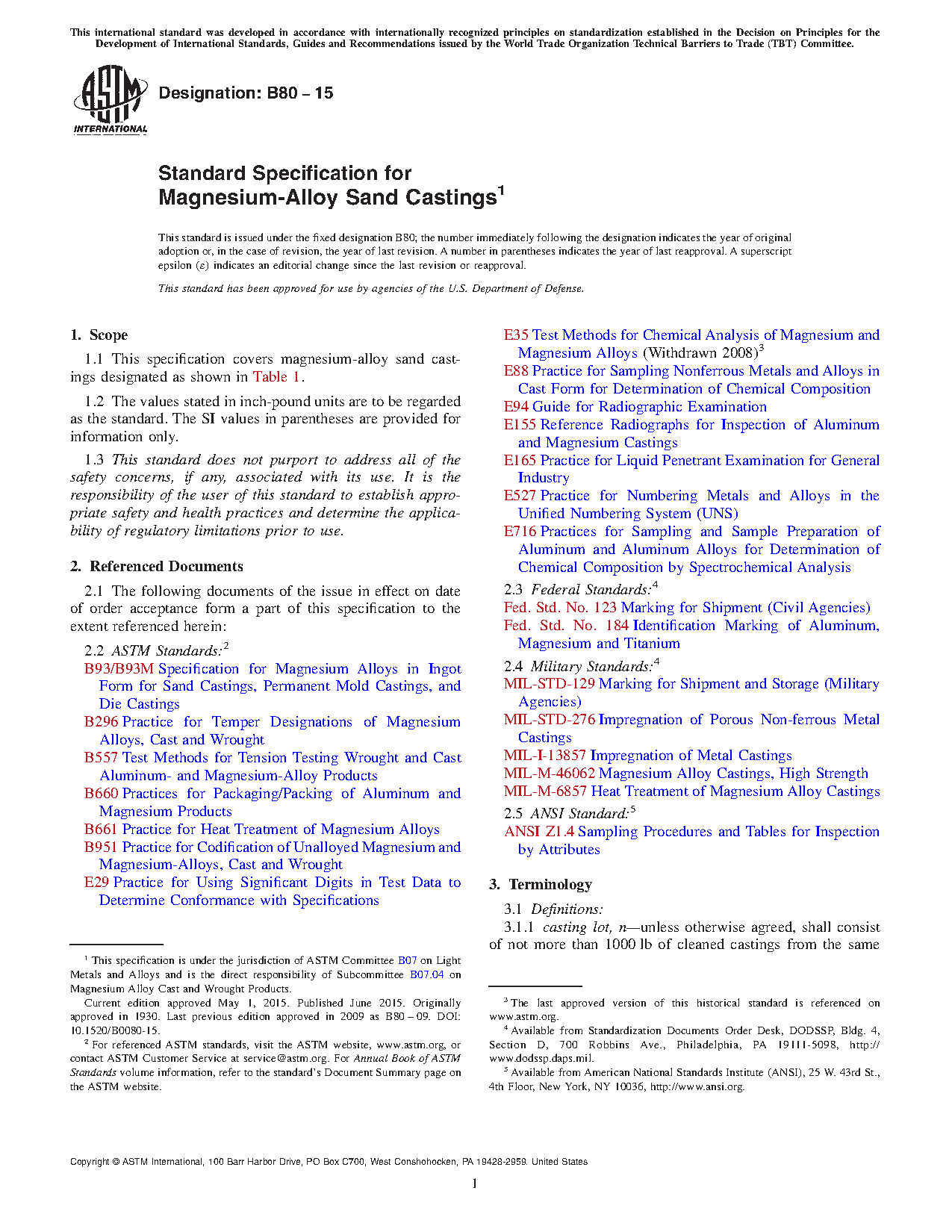 1.1 This specification covers magnesium-alloy sand castings designated as shown in Table 1.