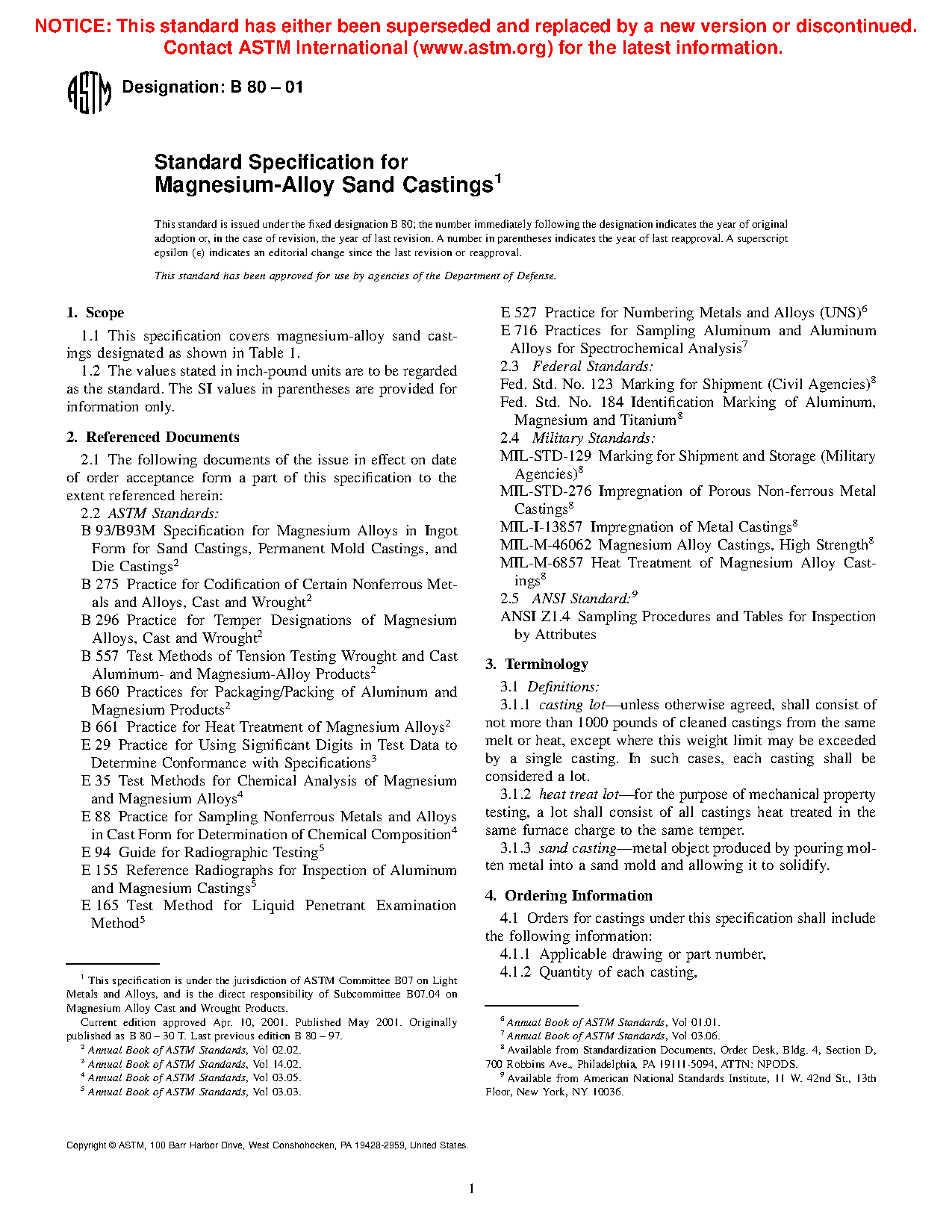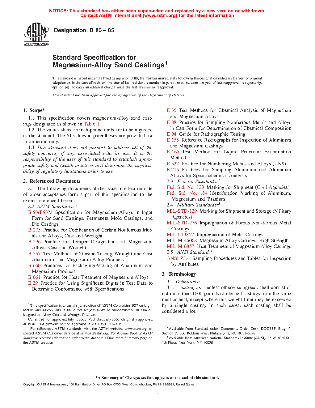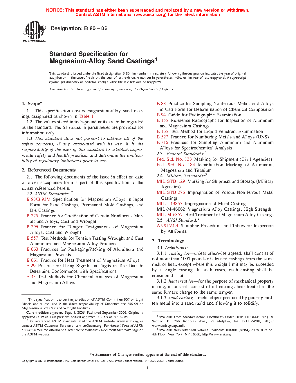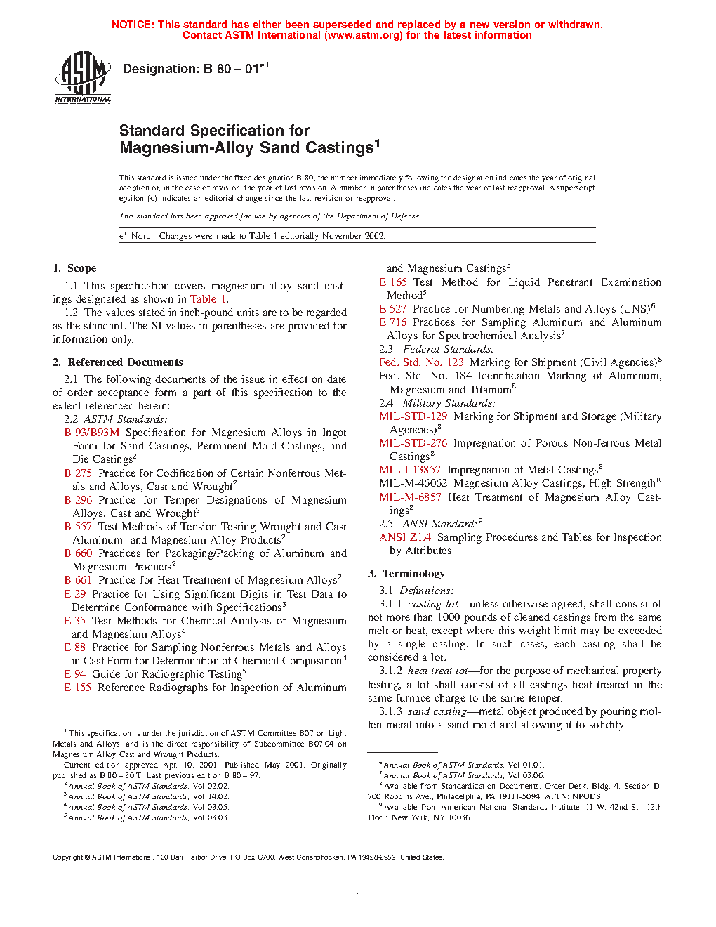 1.1 This specification covers magnesium-alloy sand castings designated as shown in Table 1.