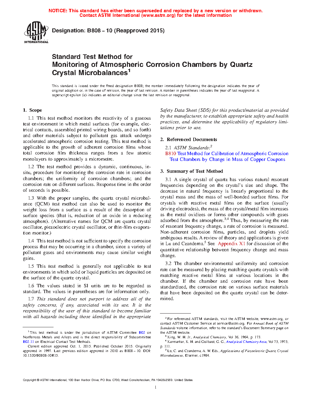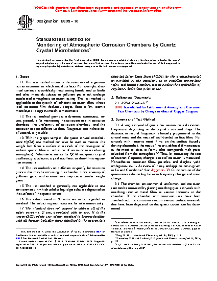 1.4 This test method is not sufficient to specify the corrosion process that may be occurring in a chamber, since a variety of pollutant gases and environments may cause similar weight gains.