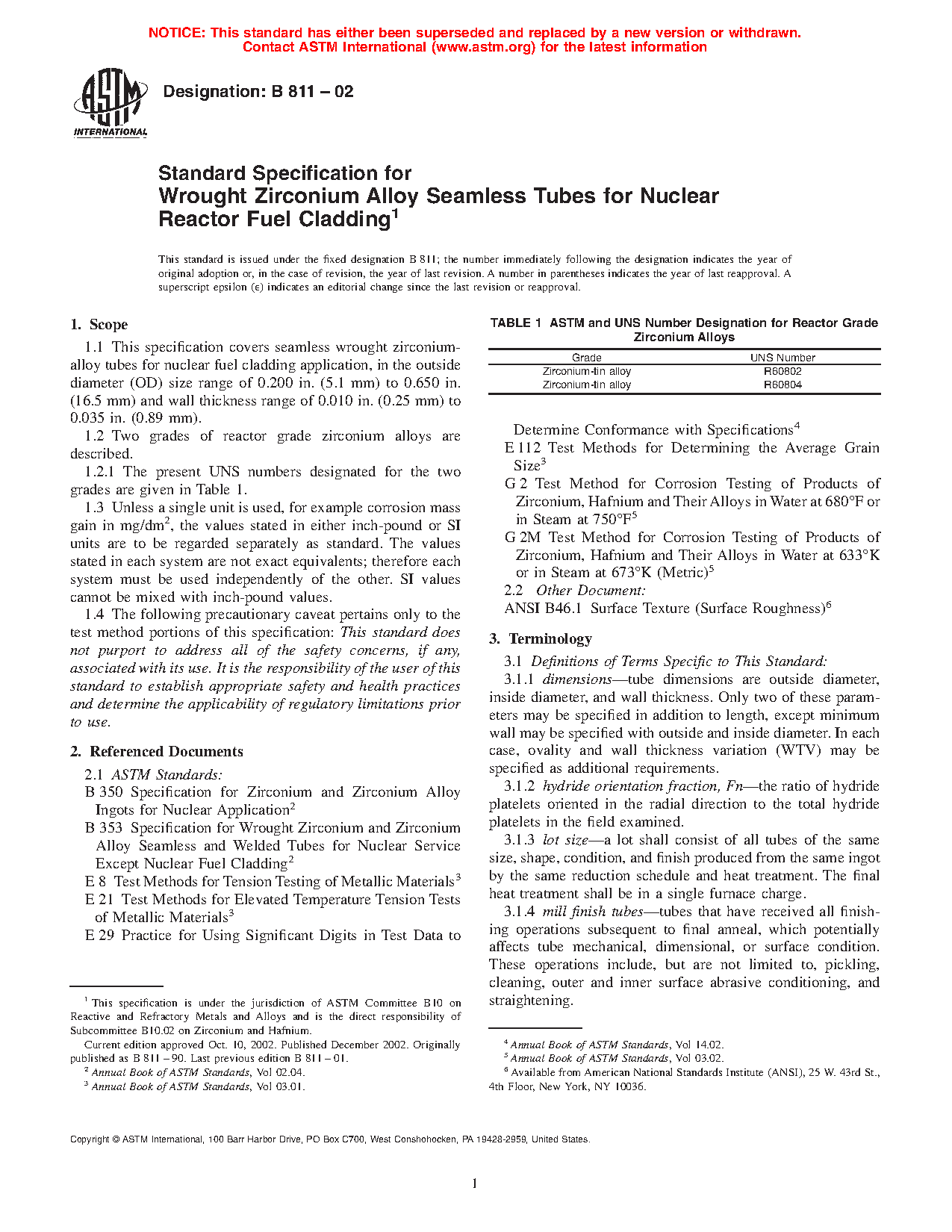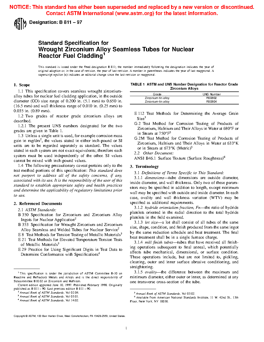 1.2 Two grades of reactor grade zirconium alloys are described.
