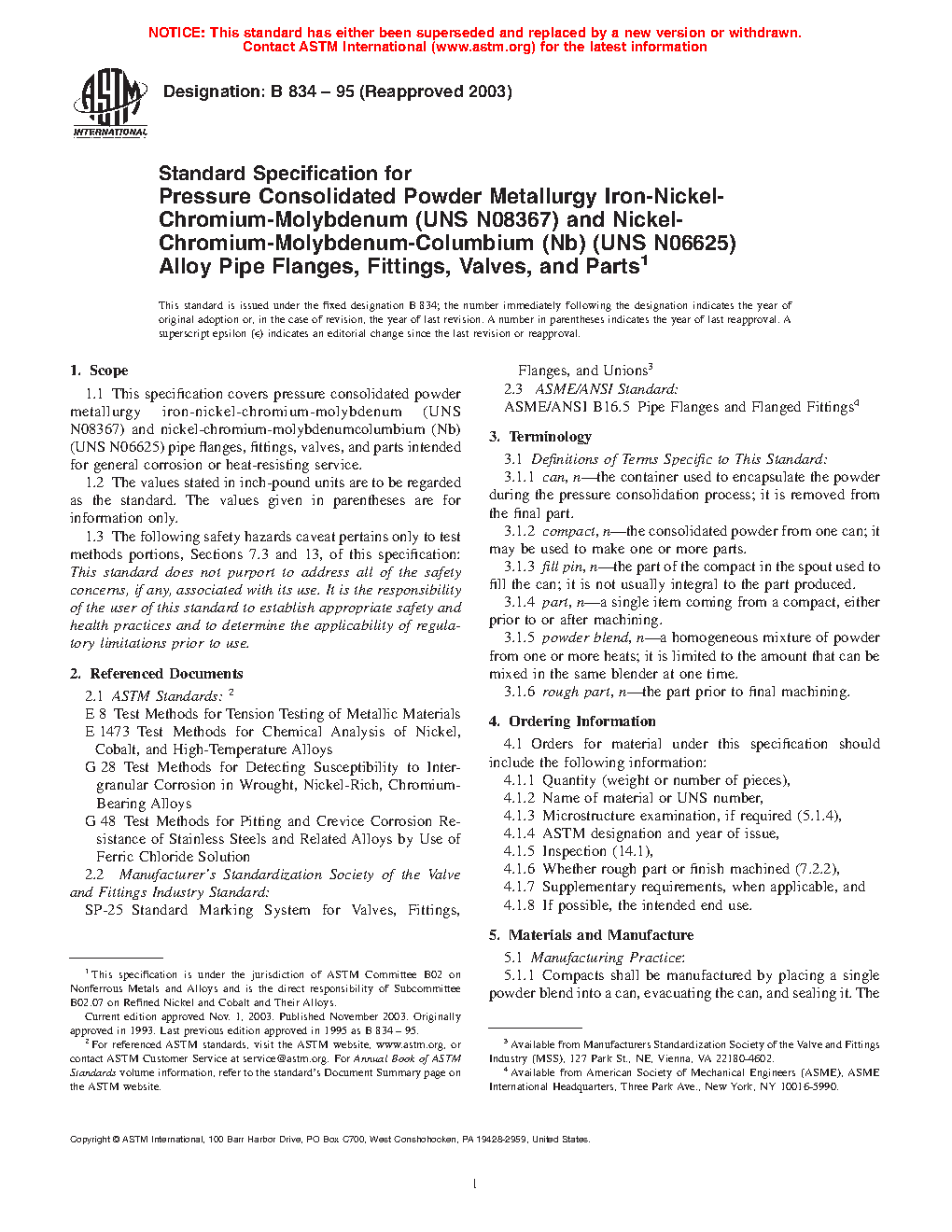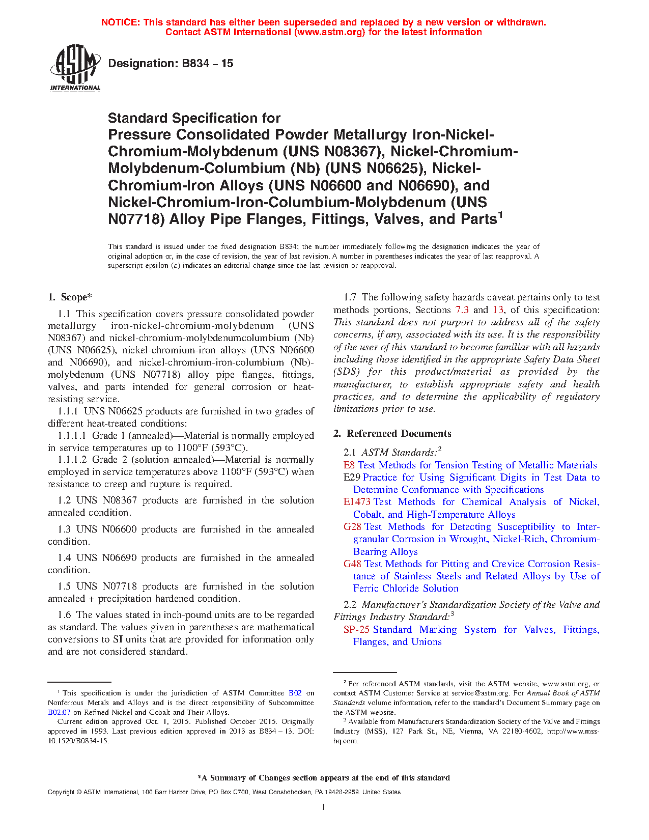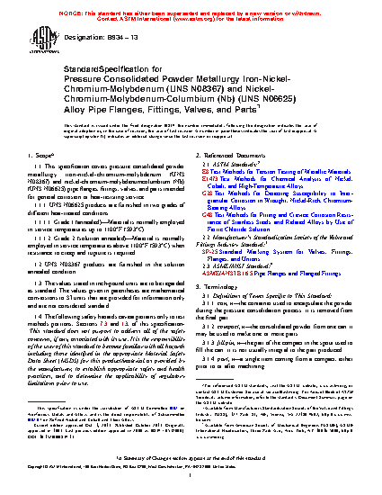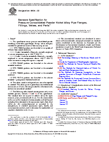 1.1 This specification covers pressure consolidated powder metallurgy nickel alloy pipe flanges, fittings, valves, and parts intended for general corrosion or heat-resisting service.