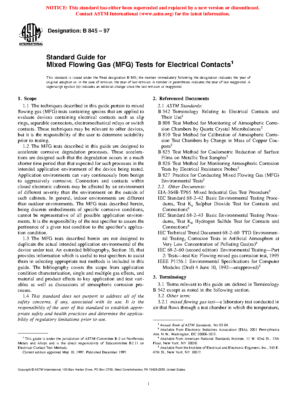 4.3 MFG tests are also employed to test the durability of a finished product with respect to atmospheric corrosion. For example, finished connectors may be exposed to a MFG test and their performances compared against each other or against a set of fixed requirements. Relays or switch contacts may be exposed in the operated and non-operated conditions to compare performance.